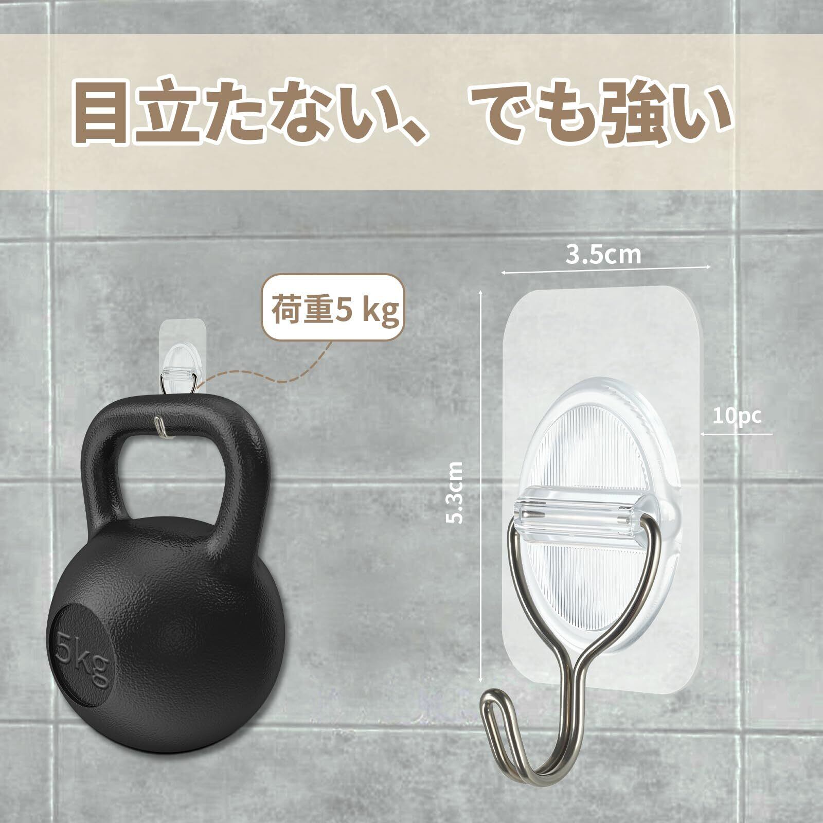 壁掛けフック 粘着 剥がせるフック 壁 傷つけない 3.5cm×5.3cm透明デザイン5kg耐荷重 防水防錆 180度回転可能 賃貸対応 キッチン収納 浴室収納 インテリア飾り 簡単取り付け挂钩(10個入り)