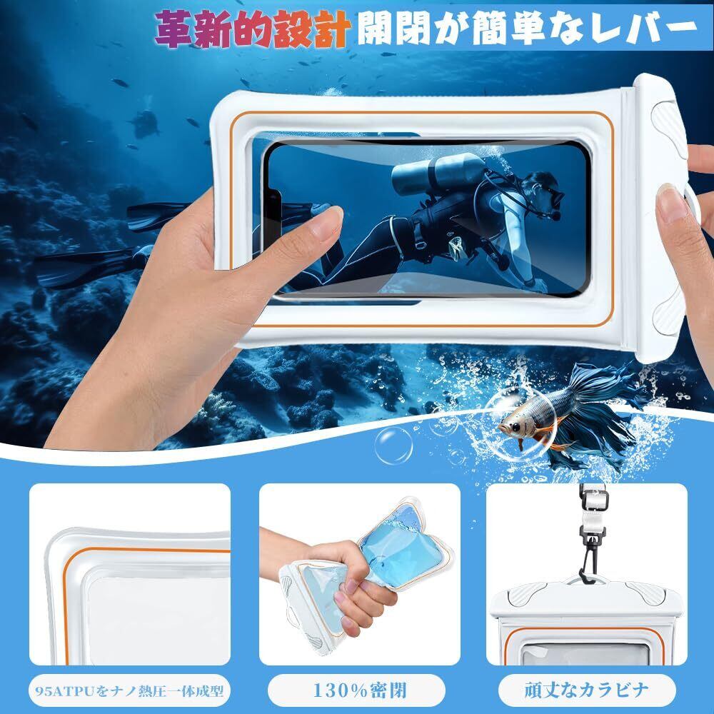 ❀【安全防水IPX8認証!完全防水】IPX8(JIS保護等級8級と同等)、30メートルまで水没しても内部に浸水することがなく、水深10mで2時間の潜水が可能です。革新的で開閉が簡単なレバーは、他の防水ポーチよりも30%強力で気密性に優れています。(※ご注意:念の為、事前に必ずスマートフォンの代わりに1枚の紙を防水ケースに入れ、その後30分間水没させ、水が内部に侵入していないか防水テストを行ってください。)