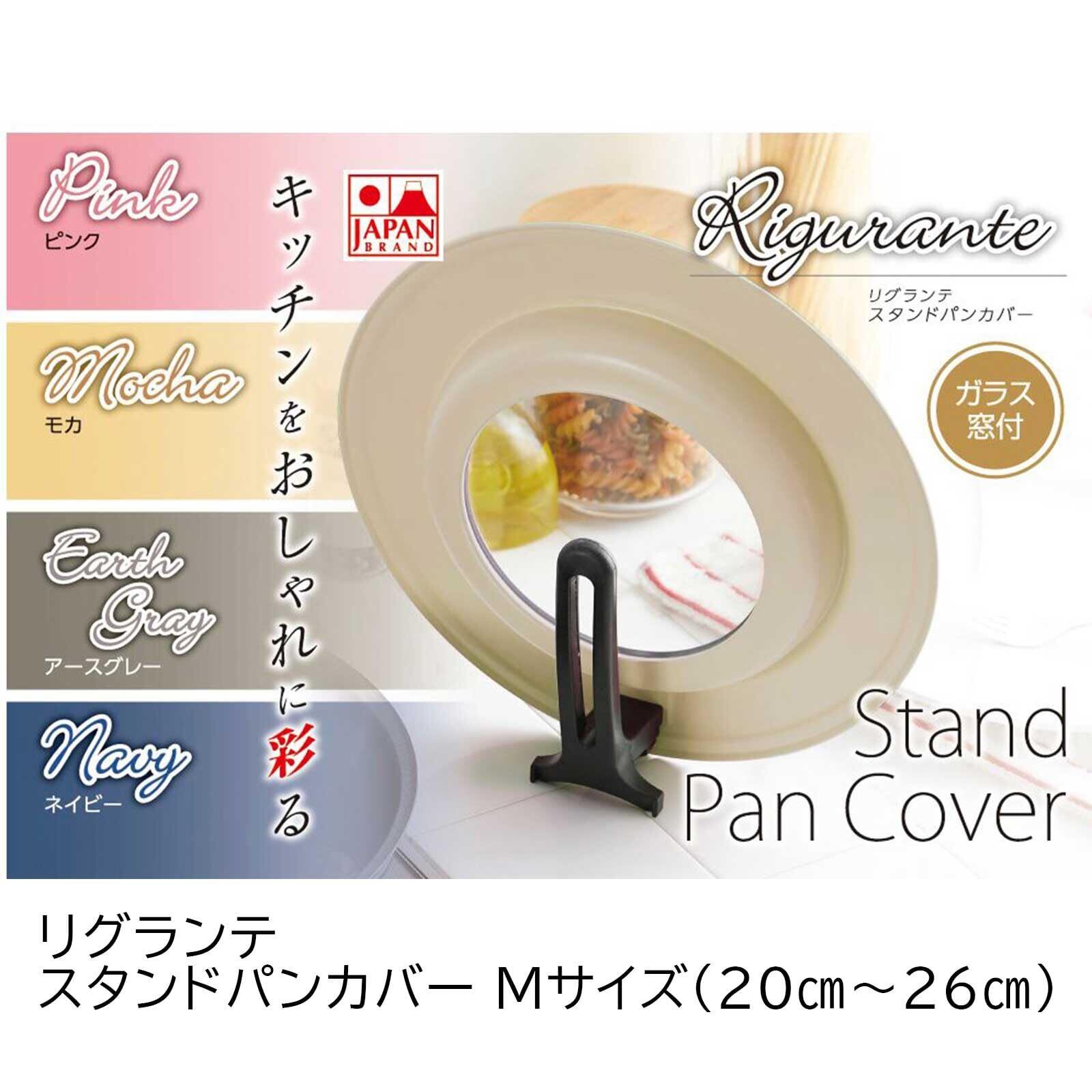 竹原製缶(Takecan) フライパンカバー リグランテ スタンドパンカバー モカ M 20㎝~26㎝ 日本製 自立式 ふっ素加工 ガラス窓 取っ手付き 蓋 ステンレス シンプルライフ 軽量 調理器具 兼用 SC-100M