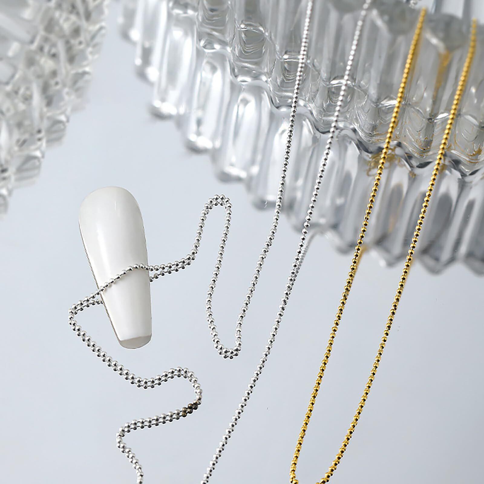 【2022最新】ネイルパーツ ネイル チェーン 4本入り 4種類 50cm 極細 ボールチェーン 裁断可能 0.8mm+1mm ネイルデコレーションパーツ ネイル ボールチェーン ネイルアート DIY 工芸品 ファッショ オーナメントン ネイルアート アクセサリー パーツ 手芸 ゴールド+シルバー