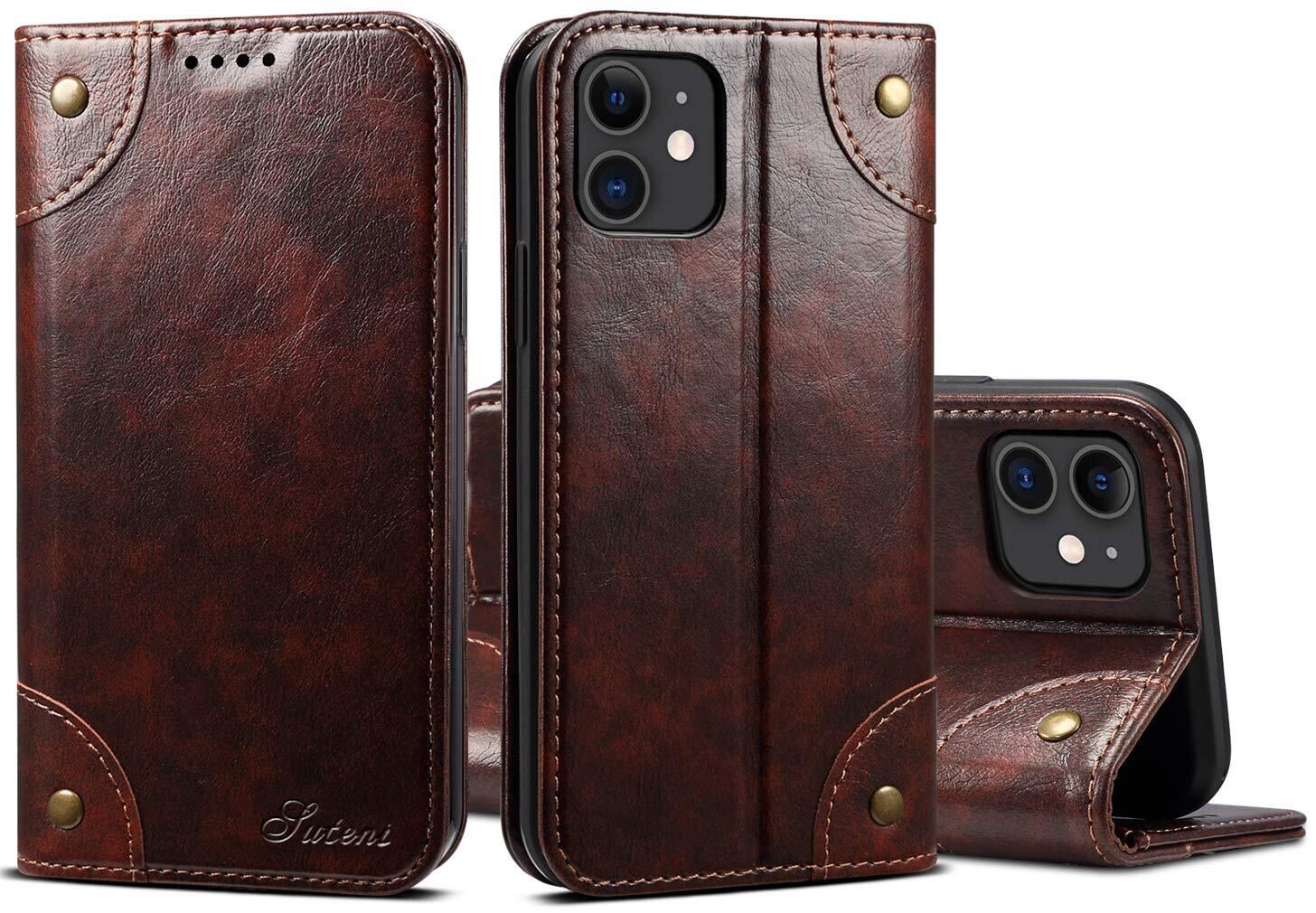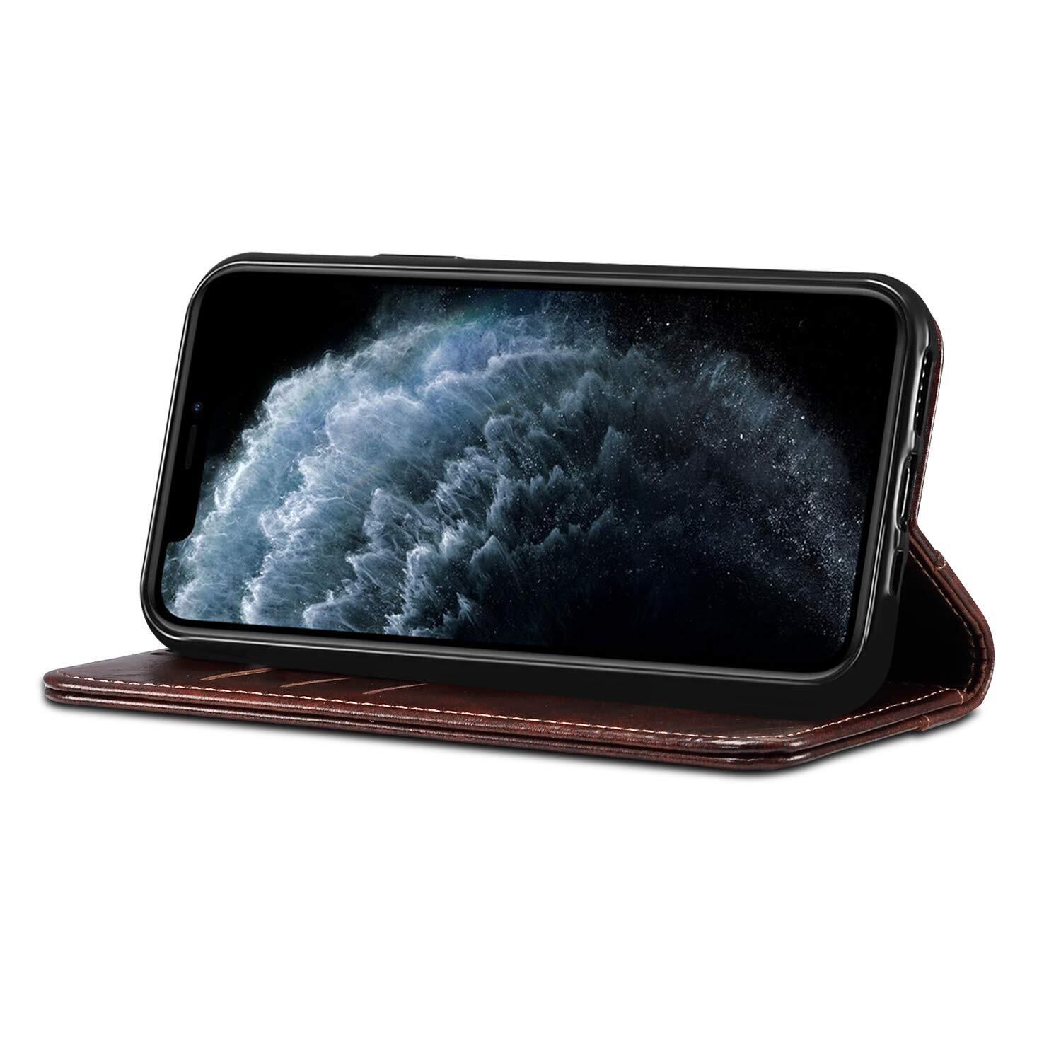 iPhone 11 ケース 手帳型 アイフォン11 カバー 手帳 カード収納 スタンド機能 マグネット式 本革 レザー 財布型 携帯スマホケース軽量 薄型 防塵 耐衝撃保護 ワイヤレス充電対応 ブラウン