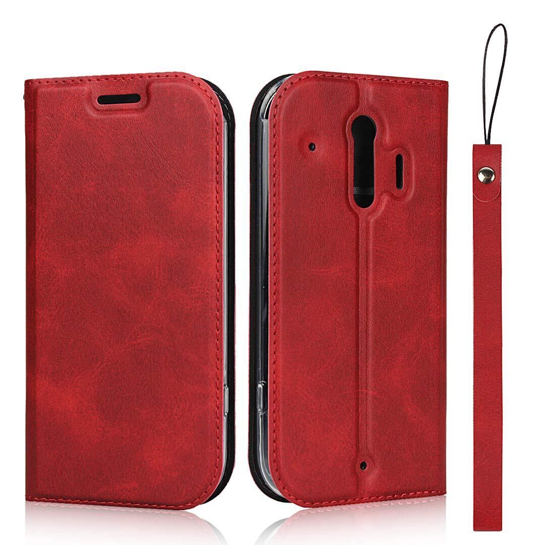 Eastwave for Fujitsu 富士通 らくらくスマートフォン me(F-01L)ケース docomo らくらくスマートフォン F-42A ケース F01L F42A 通用 カバー for fujitsu カバー PUレザー カード 収納 横置きスタンド 機能— レッド
