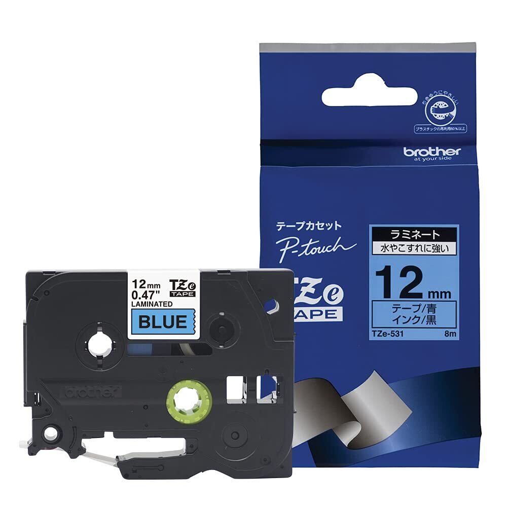 【多用途で便利なラミネートテープ!】brotherのピータッチラミネートテープTZe-531は、幅12mmのサイズで、黒文字が青い背景に映えるデザインが特徴です。ラベル作成や整理整頓に最適なこのテープを使えば、必要な情報をすぐに見つけられ、生活がよりスムーズになります!