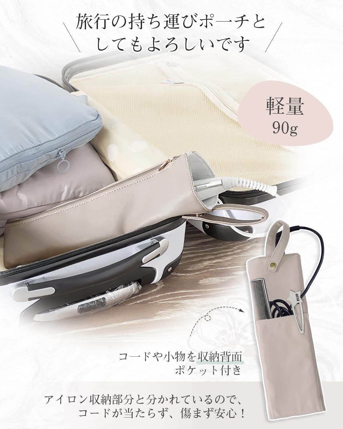 【旅行にも持ち運びポーチとして便利】厚みのある生地がヘアアイロンをしっかり保護し、旅行にも最適なポーチです。耐熱素材を使用しているので、アイロンをしまったままでも安心です。チェックアウト前でも簡単に収納し、スーツケースに入れても安心です。
