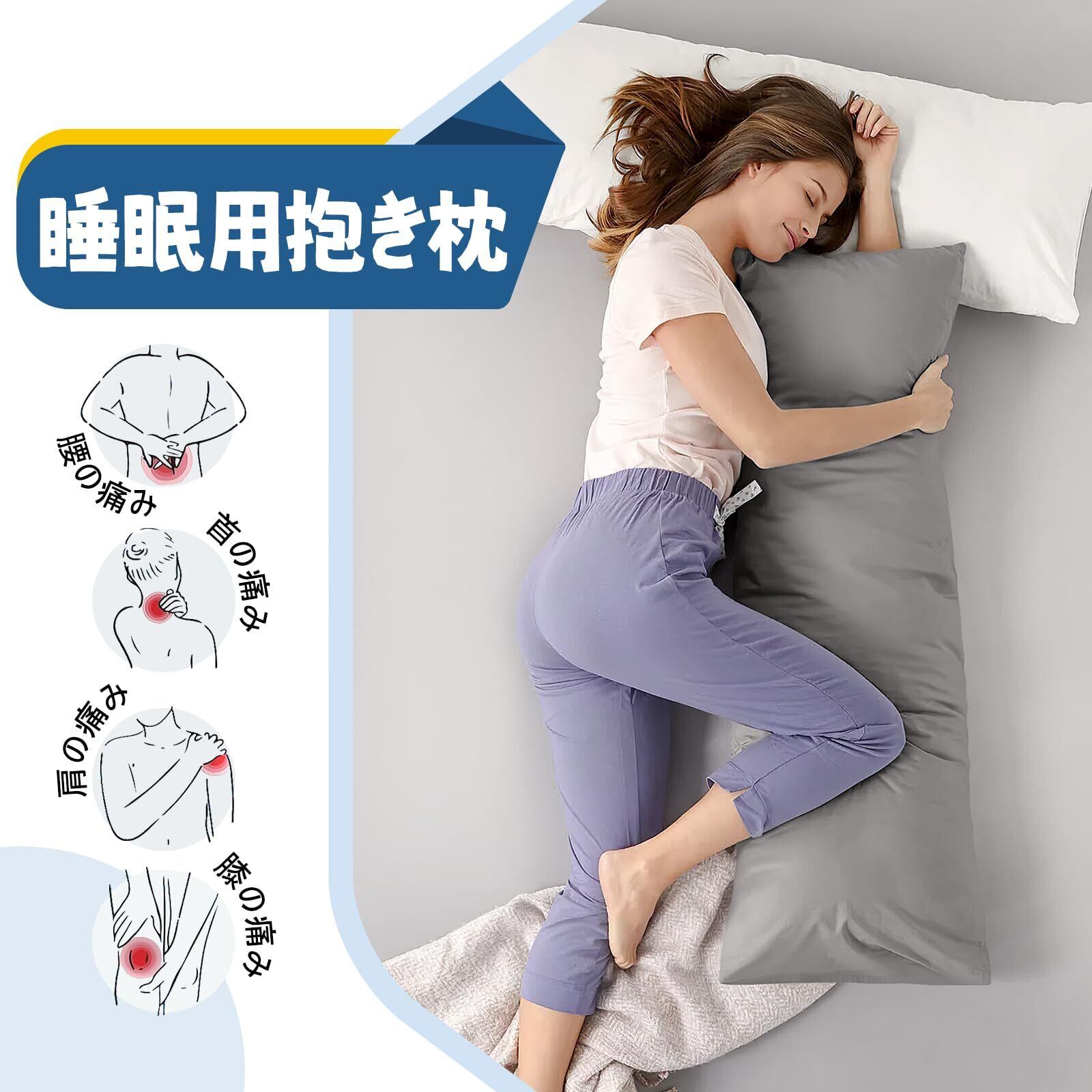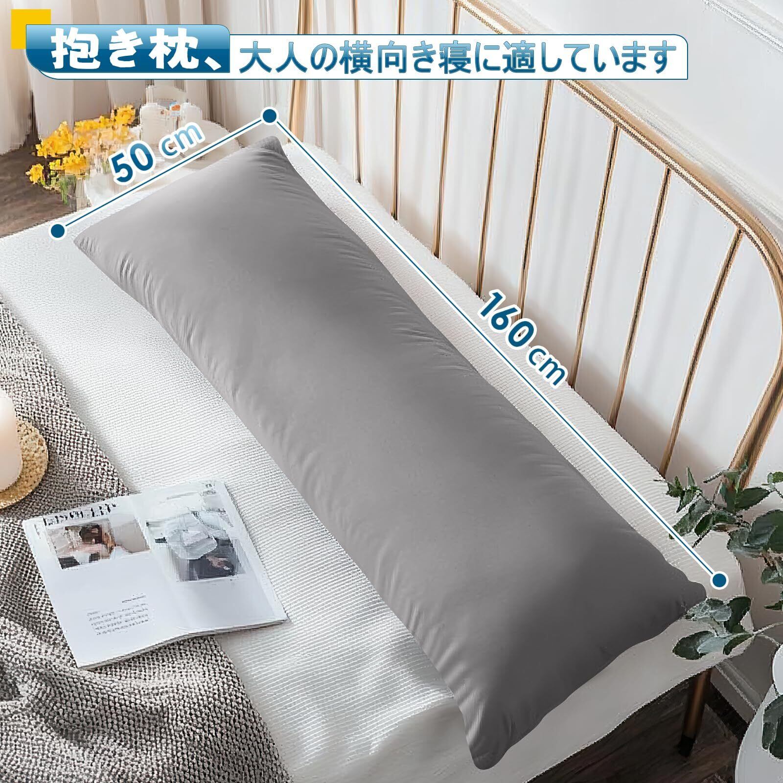 抱き枕 だき枕 本体160x50 だきまくら大きいサイズ 長い枕 女性 男性用横向き寝 枕 背もたれクッション 抱きまくら安眠枕 等身大抱き枕 ロングクッション (グレー, 160x50cm)