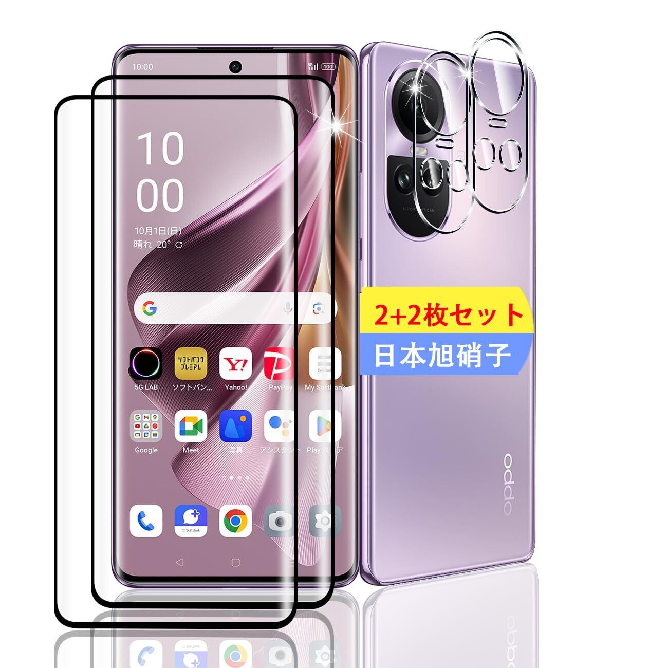 【人気商品】【2+2枚セット】 対応 OPPO Reno10 Pro 5G ガラスフィルム スマホ 保護フィルム (2枚) + 用 OPPO Reno 10 Pro レンズ保護フィルム (2枚) 【日本製素材旭硝子製】 用 OPPO Reno10 Pro 5G フィルム 強化ガラスフィルム 全面吸着 高透過率、硬度9H、3D Touch対応、飛散防止、指紋・汚れ防止、気泡ゼロ、ラウンドエッジ加工【FAMROLLS正規品】