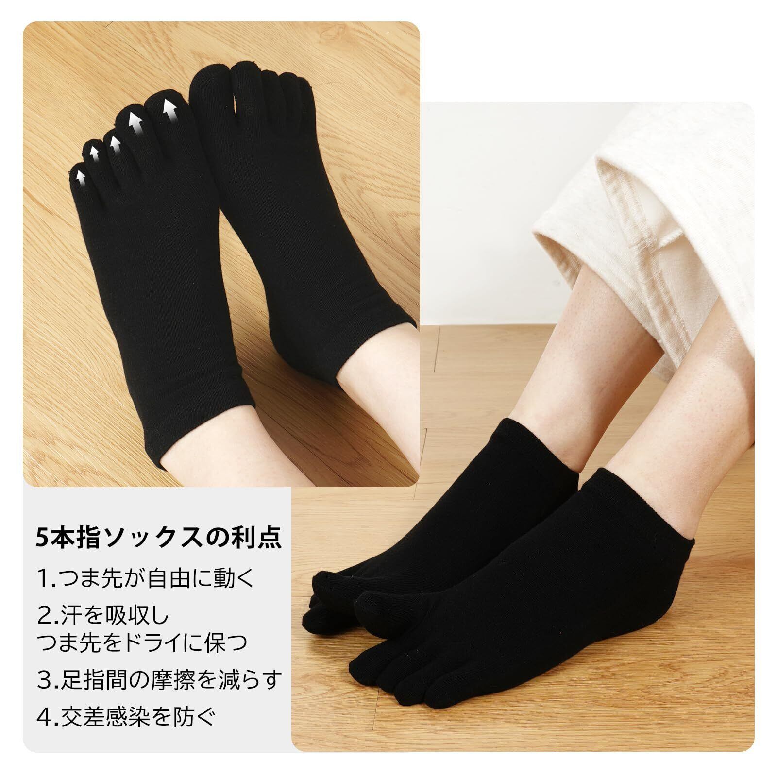 [DAMILY] 5本指ソックス レディース 黒 春夏秋用 くるぶしソックス 通気性 靴下 5本指 スポーツ 蒸れない 五本指くつした 5足セット 無地 通勤通学 22-25cm