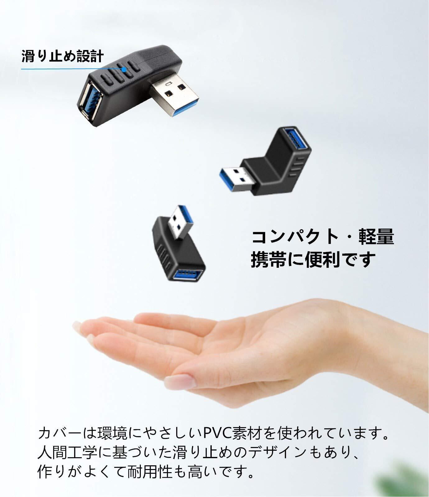 【90° L字型デザイン】USB3.0 A(オス) - USB A(メス)L字型のUSB 直角 アダプタです。パッケージ内容:4種類セット、各種類1個で計4個セット。左向きと右向き、上向きと下向きのL字型デザインを採用し、多種な場合に適応です。