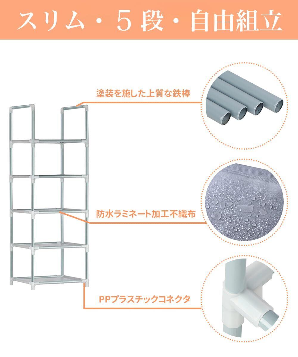 シューズラック 5段 靴収納 靴棚 5足 下駄箱 省スペース シューズボックス スリム 玄関に靴を効率収納 靴入れ 組み立て式 日本語の取扱説明書が付 (グレー, 5段)
