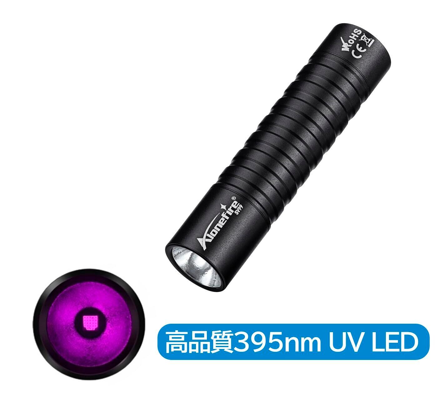 【特価商品】Alonefire SV99 3W 紫外線 ブラックライト 強力 小型 UV LED ライト 波長395nm C型USB充電式 アニサキスライト ウッド灯検査 ペット尿検出器 スコーピオン 鑑定 真贋 レジン用 硬化、猫真菌、釣り、鉱物 用 内蔵リチウム電池 付き