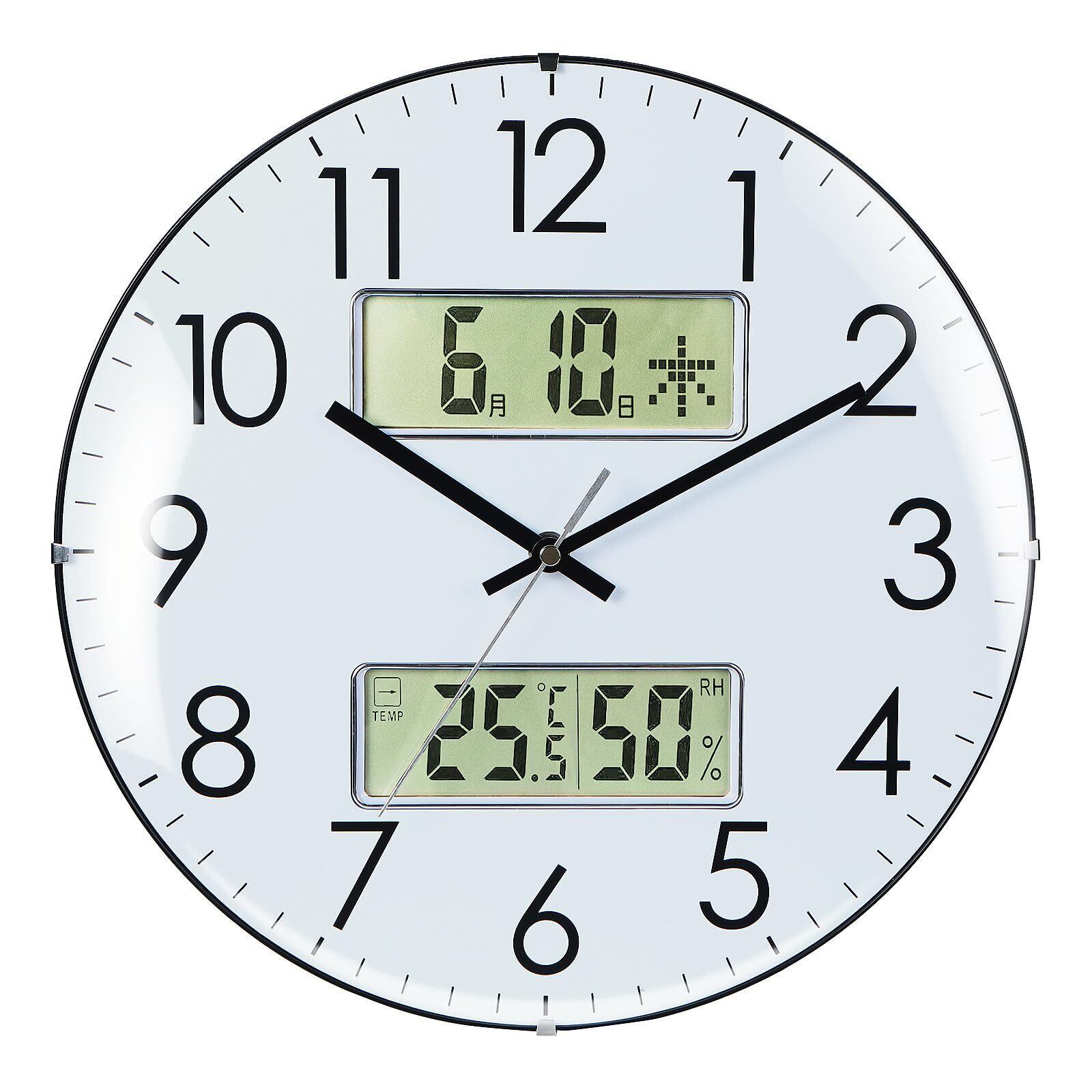 掛け時計 温度 湿度 日付 曜日表示 連続秒針 静音 直径33.5cm アナログ 球面ガラス SY-5468 ホワイト