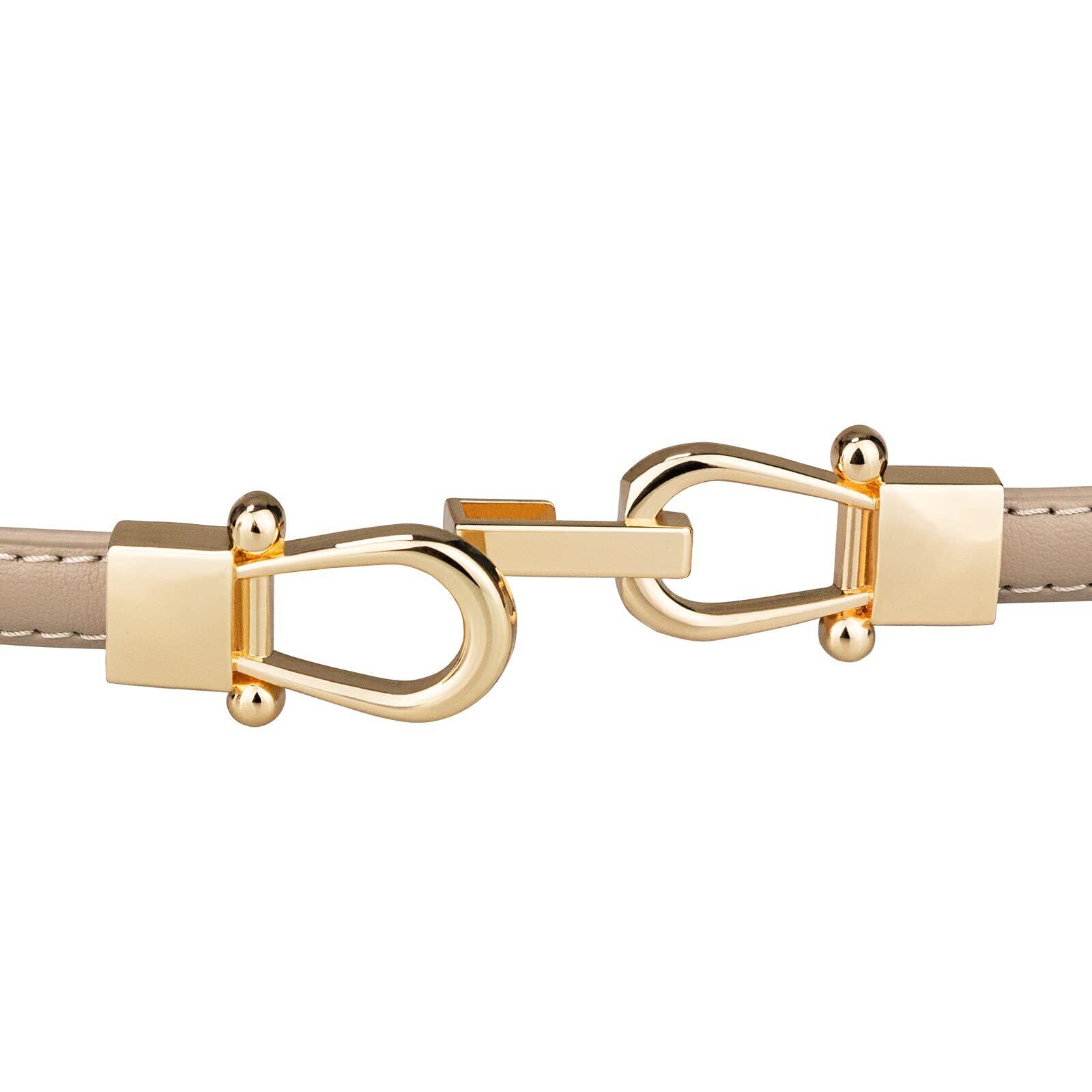 【デザイン】:細いレディースベルトなので、女性らしさを仕上げます。広げる時、金具部分を引っ張ります。締める時、左右の輪っかを動くかします。ゴールドカラーのの光沢のある高級感溢れるバックルを採用しています。価格もお手頃なので、女性らしい柔らかな印象に仕上げます。細身のデザインはがシンプルでかわいいです。飽きがこないから長く愛用できます。