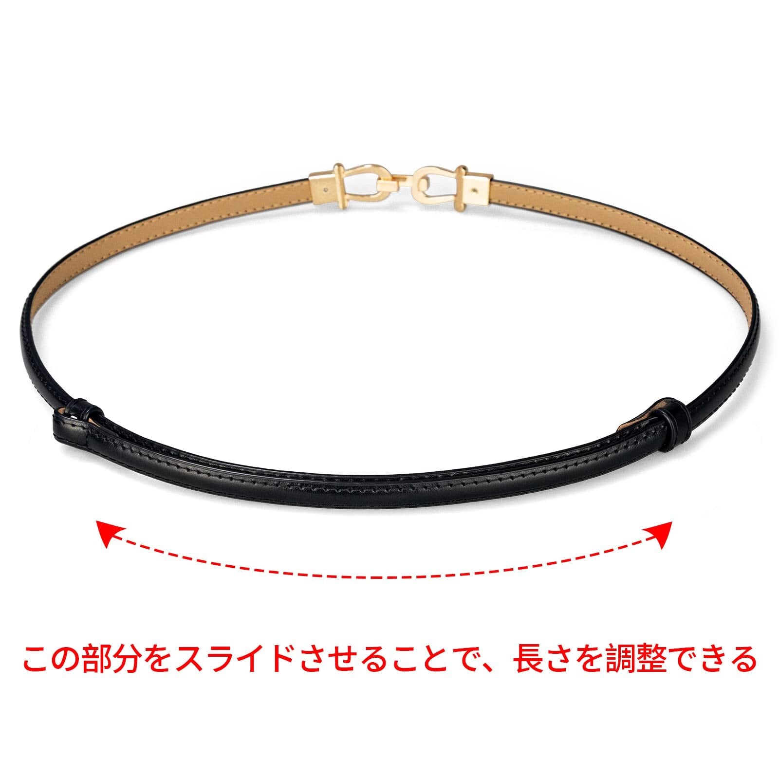 [e-mode life]ベルト レディース 革ベルト 無段階調整 穴なし カジュアル ビジネス ベルト ウエストマーク ワンピース ドレス 細い おしゃれ