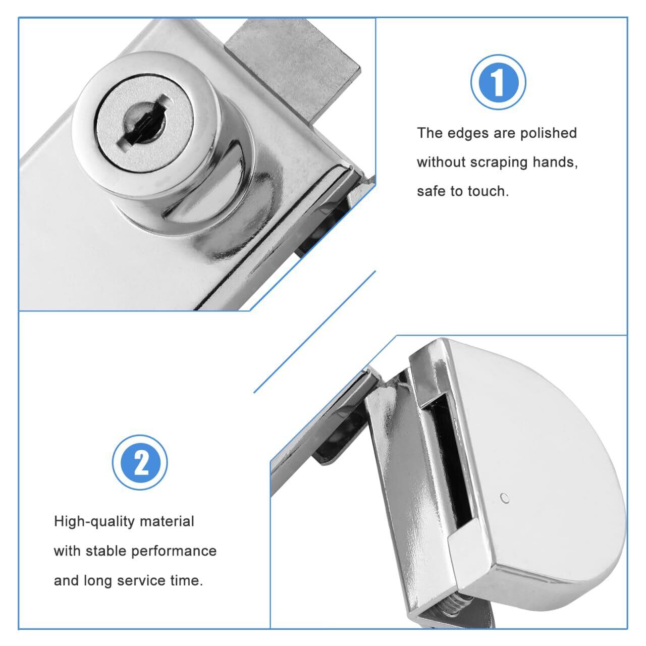 - ミラー加工と快適な手触り、耐摩耗性があり、幅広い用途に使えるキー付きキャビネットロック。