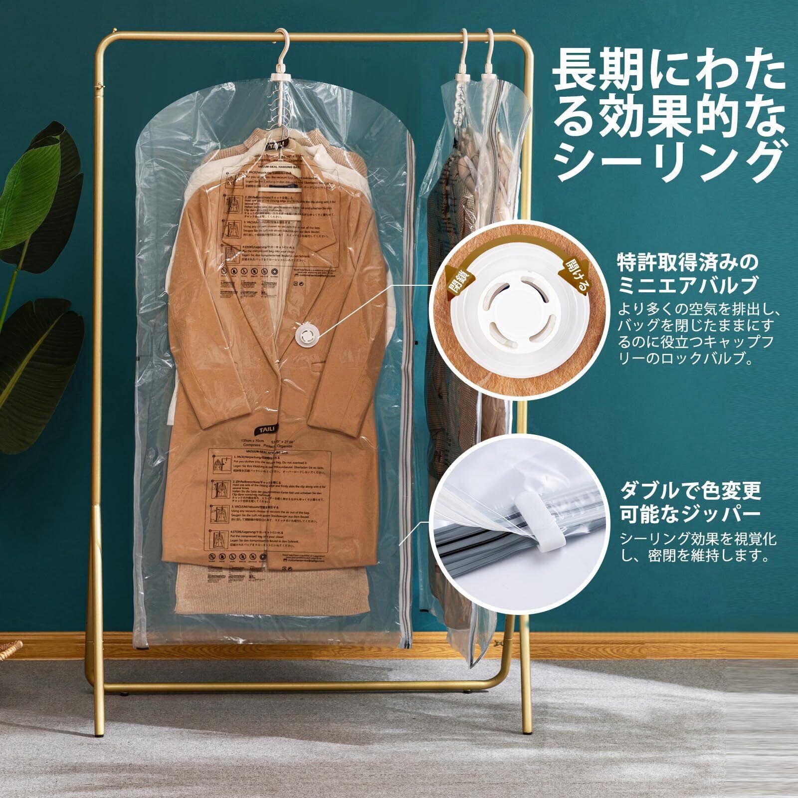 TAILI 衣類圧縮袋 吊るせる圧縮袋 洋服 吊り下げ 真空バッグ 衣類カバー 省スペース 掃除機対応 バッグハンガー 着物収納 コート ジャケット スーツ用 花火大会 取り付け簡単 繰り返し利用可能 Lサイズ 4枚組 透明