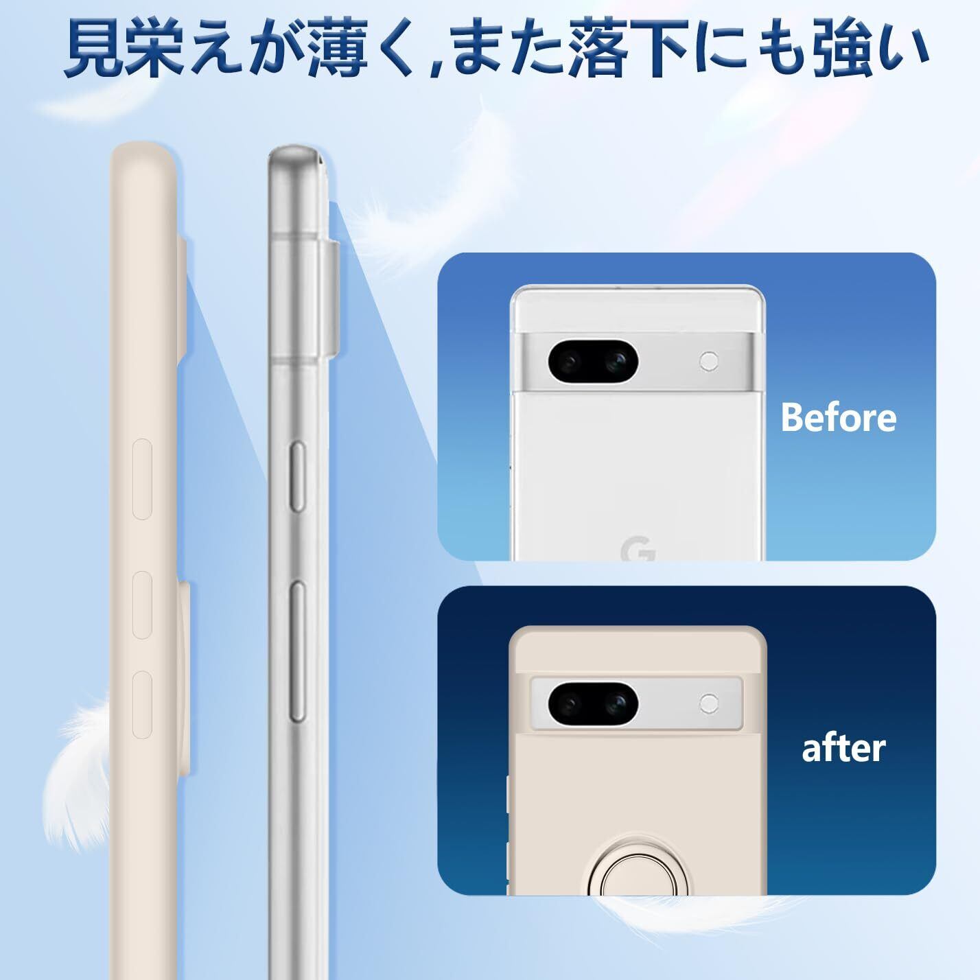 【特価セール】Google Pixel 7a ケース 耐衝撃 リング付 液体シリコン スタンド機能付き ピクセル7a リング スマホケース マット感 ソフト 360回転車載ホルダー (ホワイト)
