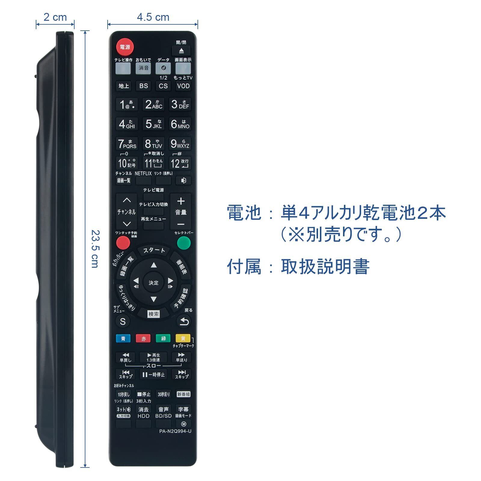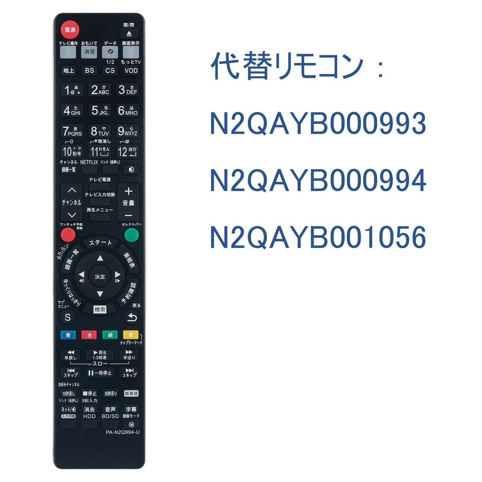 代替リモコン:N2QAYB000993 N2QAYB000994 N2QAYB001056
