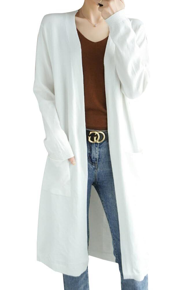 【特価セール】[Hanmall] カーディガン ロング レディース 暖かい 細見え 厚手 無地 大きいサイズ ゆったり 冬服 秋 冬 ニット ポケット付き FREE SIZE ルームウェア 冷房対策 LON257