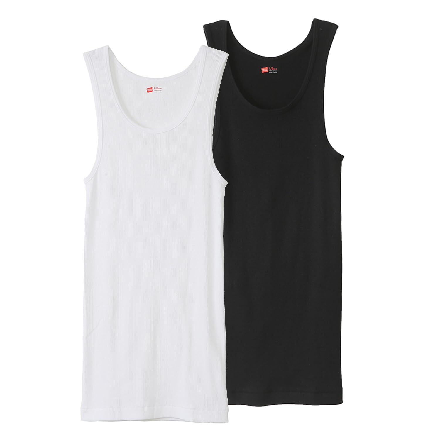 Hanes タンクトップ(2枚組) 綿100% 柔らかい 肌触り 動きやすいノースリーブ 2枚組 綿100% リブ編み 丸胴仕様 2P Aシャツ HM2-K701メンズ
