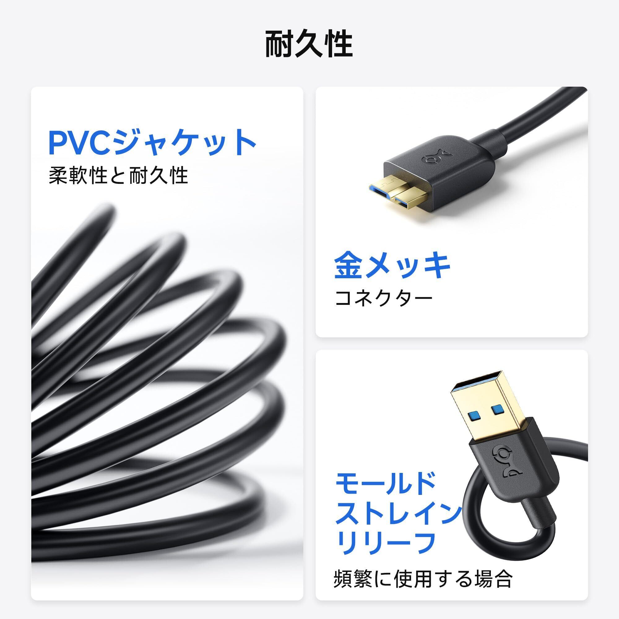 【USB Micro USB ケーブル】USB Type A Microusb ケーブルはUSB Type A ポート搭載のパソコンはUSB 3.0 Micro B ポート搭載の外付けハードドライブ、USBハブ、スマートフォン、又はタブレットを接続可能で、ポータブルUSB 3.0 ハードドライブにとって不可欠なアクセサリーです。