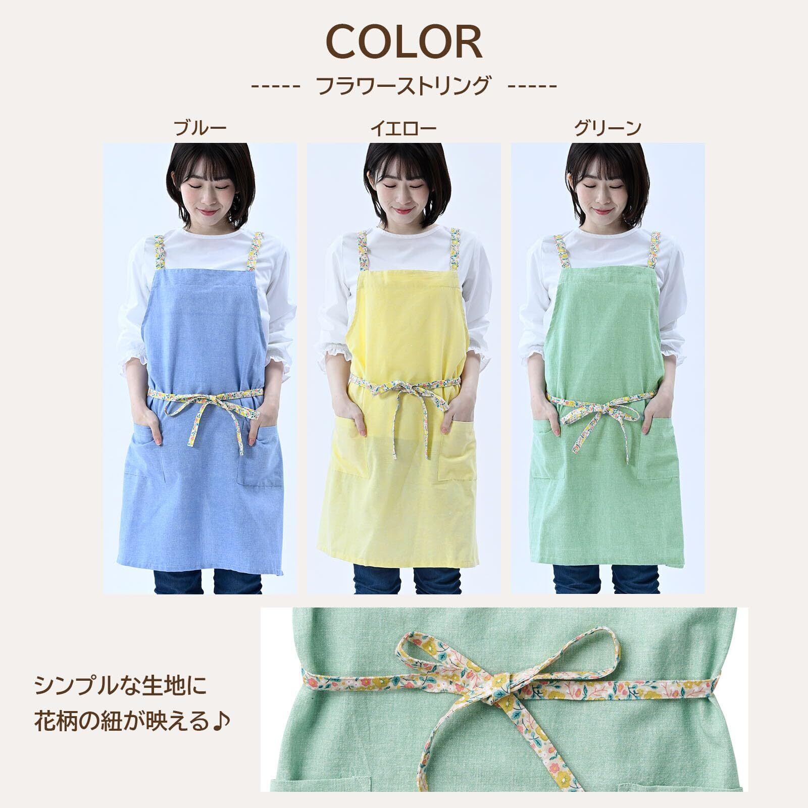 【5つの魅力】■しっかり結べる前結びタイプ:身長や体型を気にせず着やすくなっています■調節可能なすっきり肩紐:後ろのボタンで2段階に調節可能です■ポケット2か所:スマホや小物を入れてさっと取り出せます■調度いいサイズ感:長すぎず短すぎない着丈73cm■こだわり抜いた素材:インド綿100%使用。洗い替えに何枚あっても便利で、プレゼントにもオススメです。