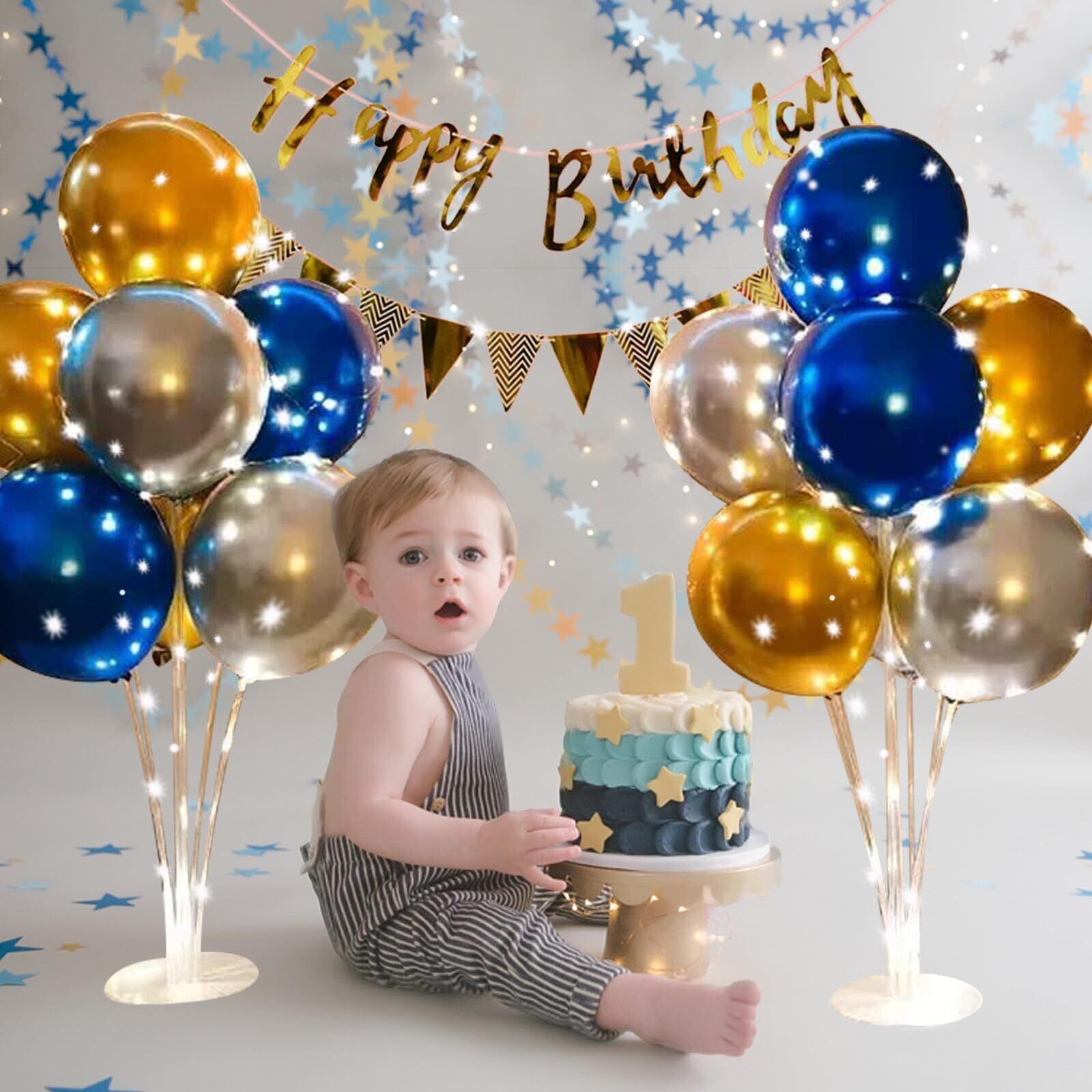 【新着商品】PRATYUS 風船誕生日パーティーバルーンセット バルーンスタンド ホルダー HappyBirthDayガーランド 誕生日デコレーション スターライトバースデー飾り (ブルー) | allstore5