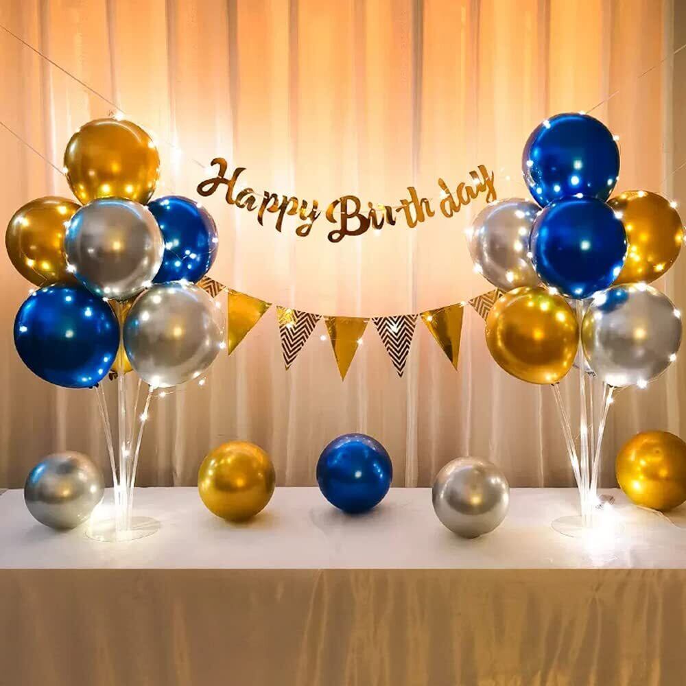 【新着商品】PRATYUS 風船誕生日パーティーバルーンセット バルーンスタンド ホルダー HappyBirthDayガーランド 誕生日デコレーション スターライトバースデー飾り (ブルー)