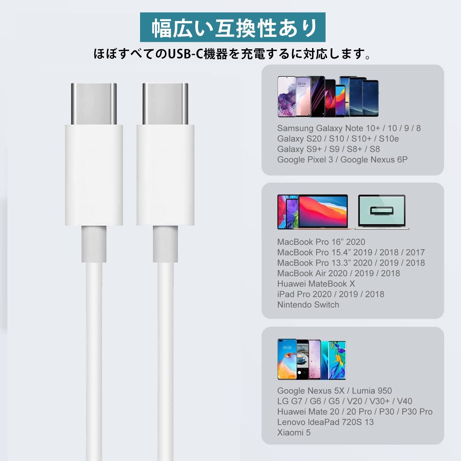 【幅広い対応性】ほぼすべてのUSB-C機器を充電するに対応します。MacBook Air 2020 /2019 /2018 /MacBook Pro 13'' 2020 /2019 /2018 /2017 /2016 / iPad Pro 2021 / 2020 / 2018 / iPad mini 6 / ipad air(13インチ2020) /Galaxy S21/ S21+/ S21 Ultra /S20/ S20+/ S20 Ultra/S10, Note 20/ 20 Ultra /Note 10/A90 A80 A72 A71 A52/ Pixel 4a/pixel 5 /Pixel 3a / 3a XL / 3 / 3XL / 2 / 2XL Nexus 6P / 5X / LGV60 /V50 /V40 /Switch など。