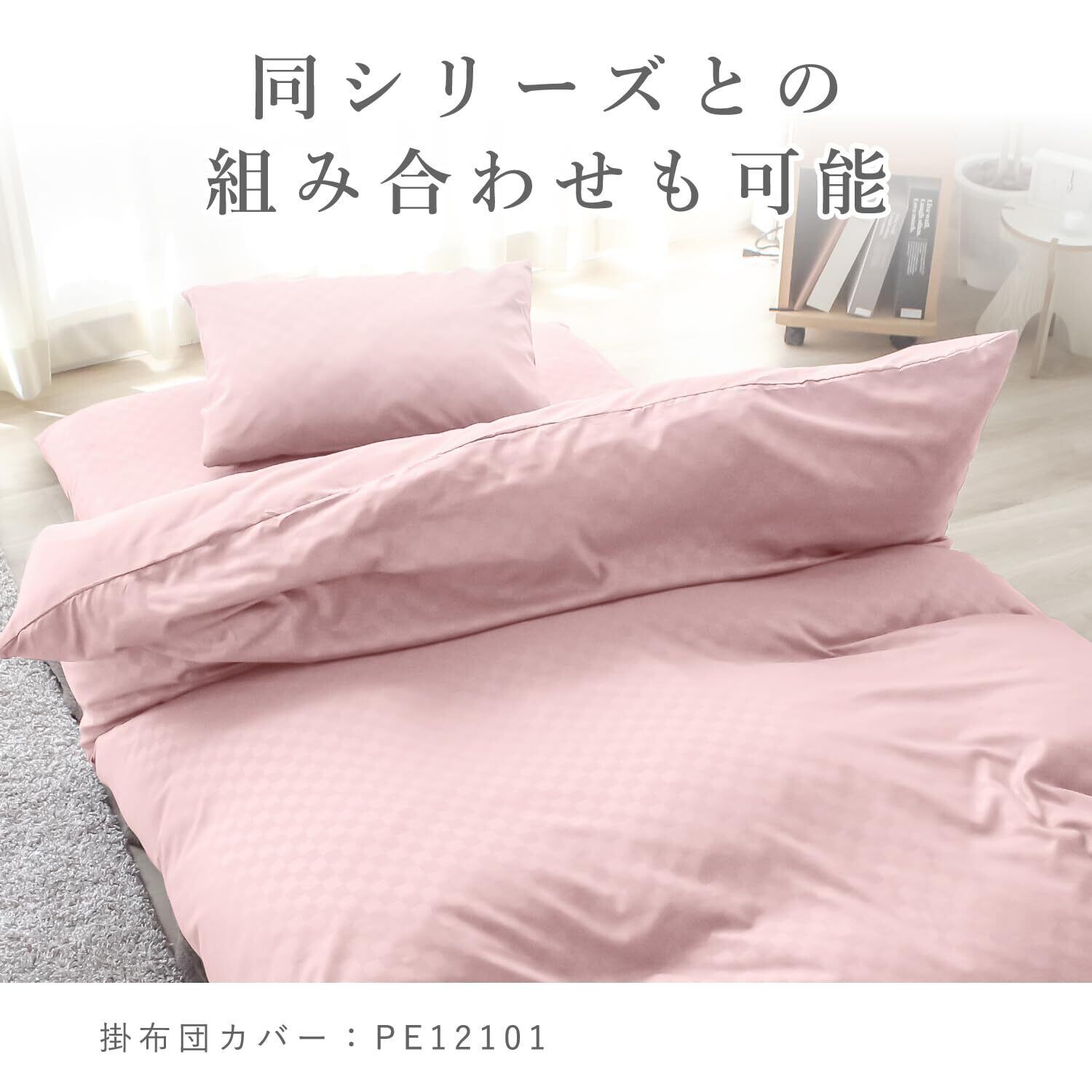 単色だが光の加減で市松柄が現れるモダンテイストの布団カバー。一見、無地のカバーにも見える柄が和洋室どちらの部屋にも合わせやすくなっています。