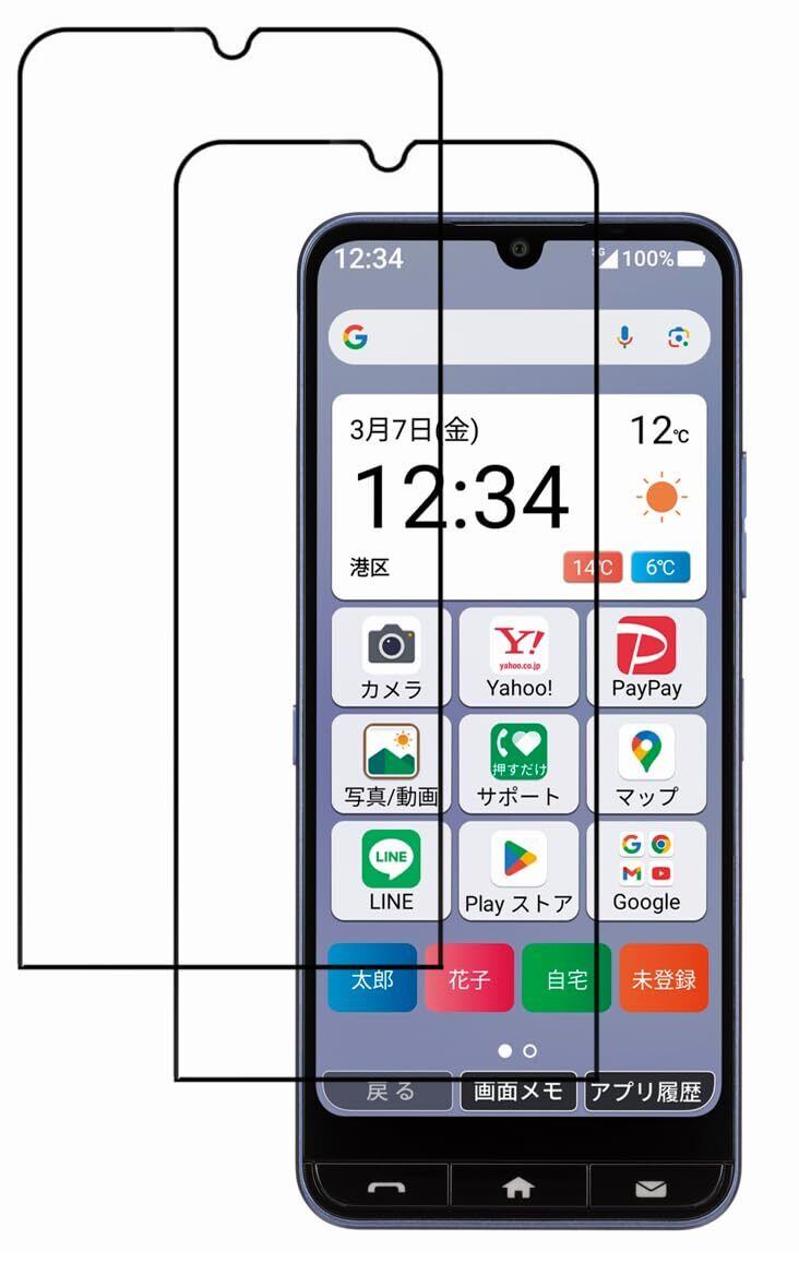 【特価商品】【2枚セット】適用 かんたんスマホ4 A402ZT ガラスフィルム 適用 かんたんスマホ4 フィルム 強化ガラス 指紋認証対応 日本素材製 保護フィルム 画面保護 ガラスカバー 極薄 高透過率 耐指紋 撥油性 2.5Dラウンドエッジ加工 硬度9H/高透過率/自動吸着