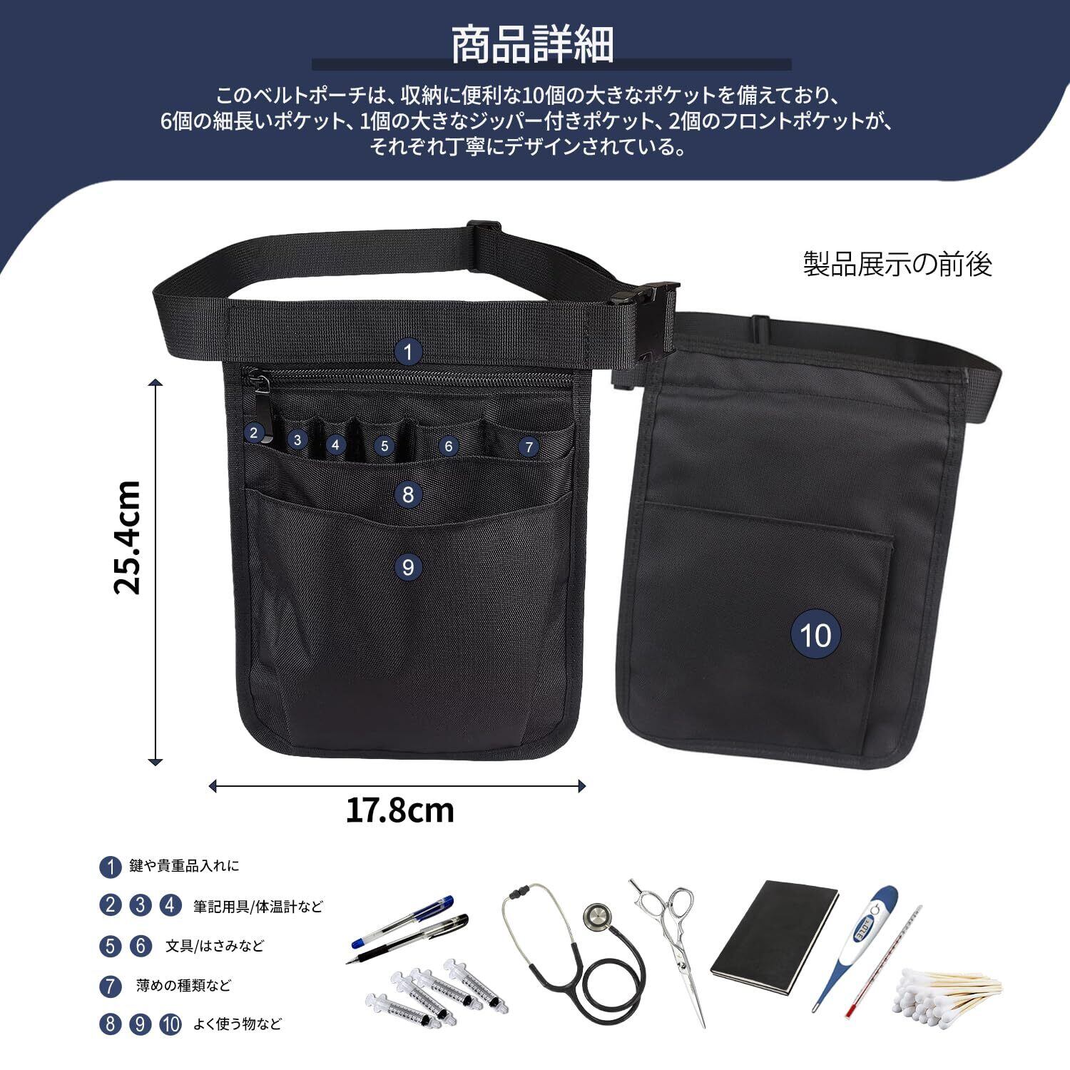 ナースポーチ ウエストポーチ 仕事用 ブラック 看護師 ポーチ 工具ポーチ ナースポーチ ウエストポーチ 作業用ポーチ 多機能ポーチ 文具ポーチ 美容師 ウエストポーチ ベルトポーチ 作業用 小型 防水 ポータブル 耐久性