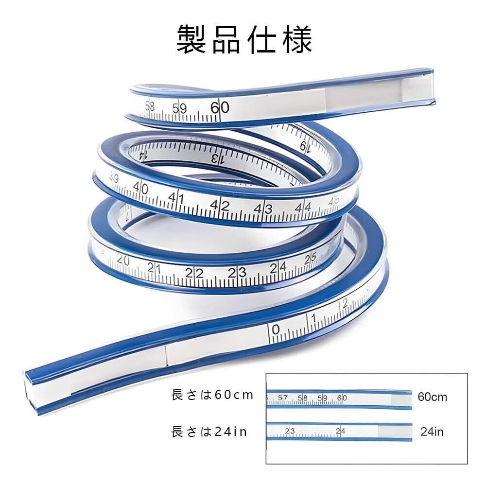【サイズ詳細】曲線定規は長さ約24インチ、測定可能な長さは60cm。