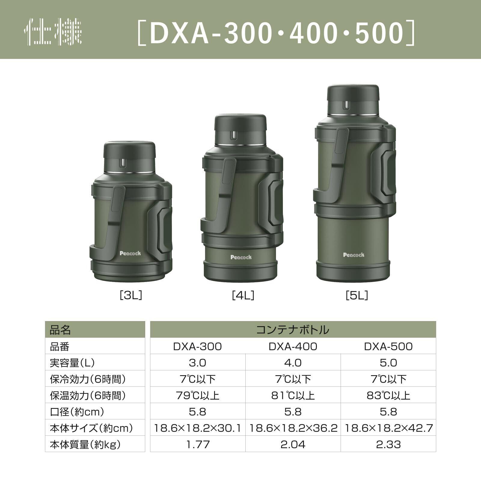【数量限定】ピーコック魔法瓶工業(The-peacock) ピーコック 水筒 4L 大容量 保温 保冷 魔法瓶 コンテナボトル 真空断熱構造 ハンドル付き ステンレスボトル カーキ DXA-400 K