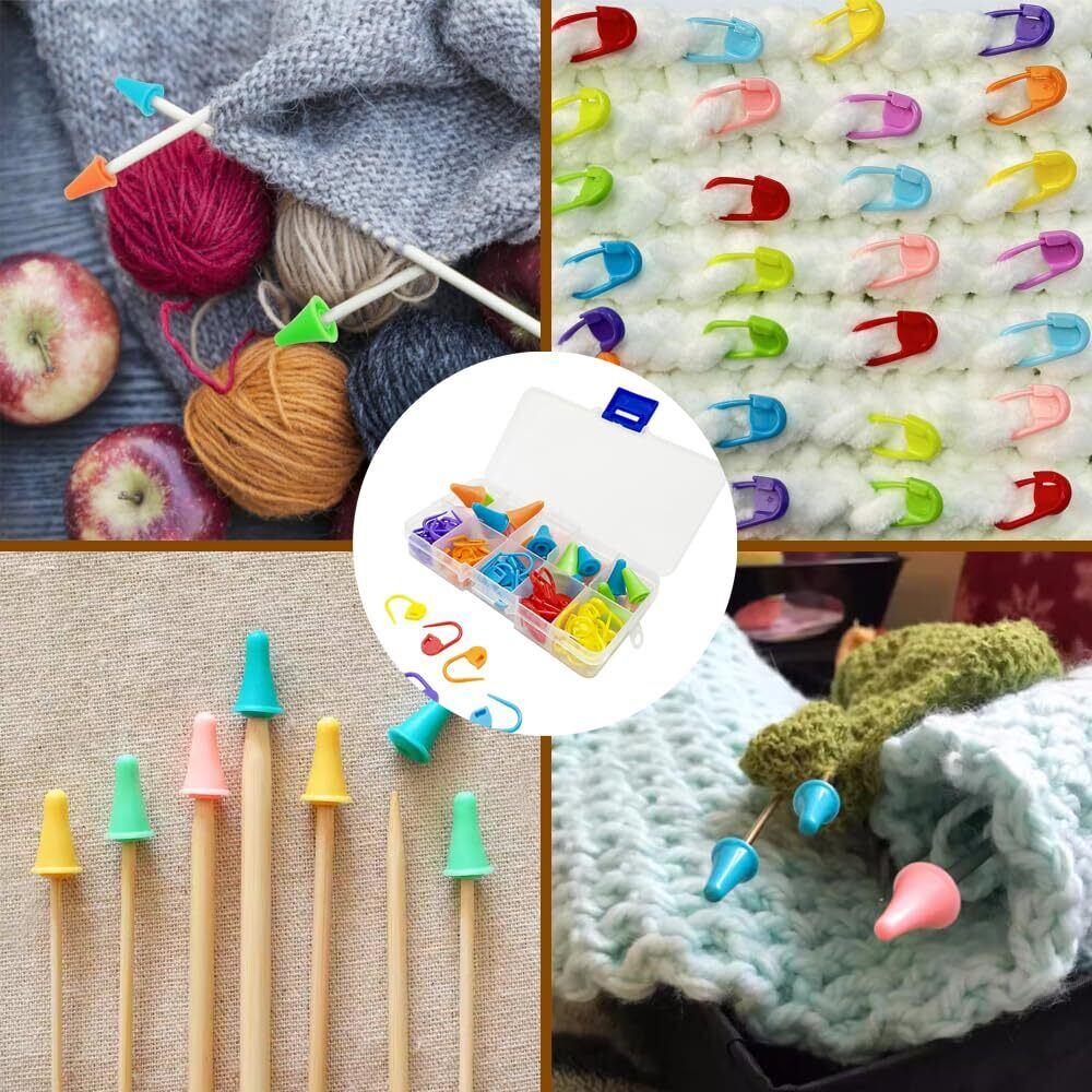 【特価セール】編み針キャップ 段数マーカー 編み物 2サイズ 81個セット ランダムカラー 棒針キャップ 安全ピン 編み針ポイントプロテクター 段数リング 針ポイントプロテクター ステッチマーカー カラフル 収納ケース付き 手芸基本入門キット