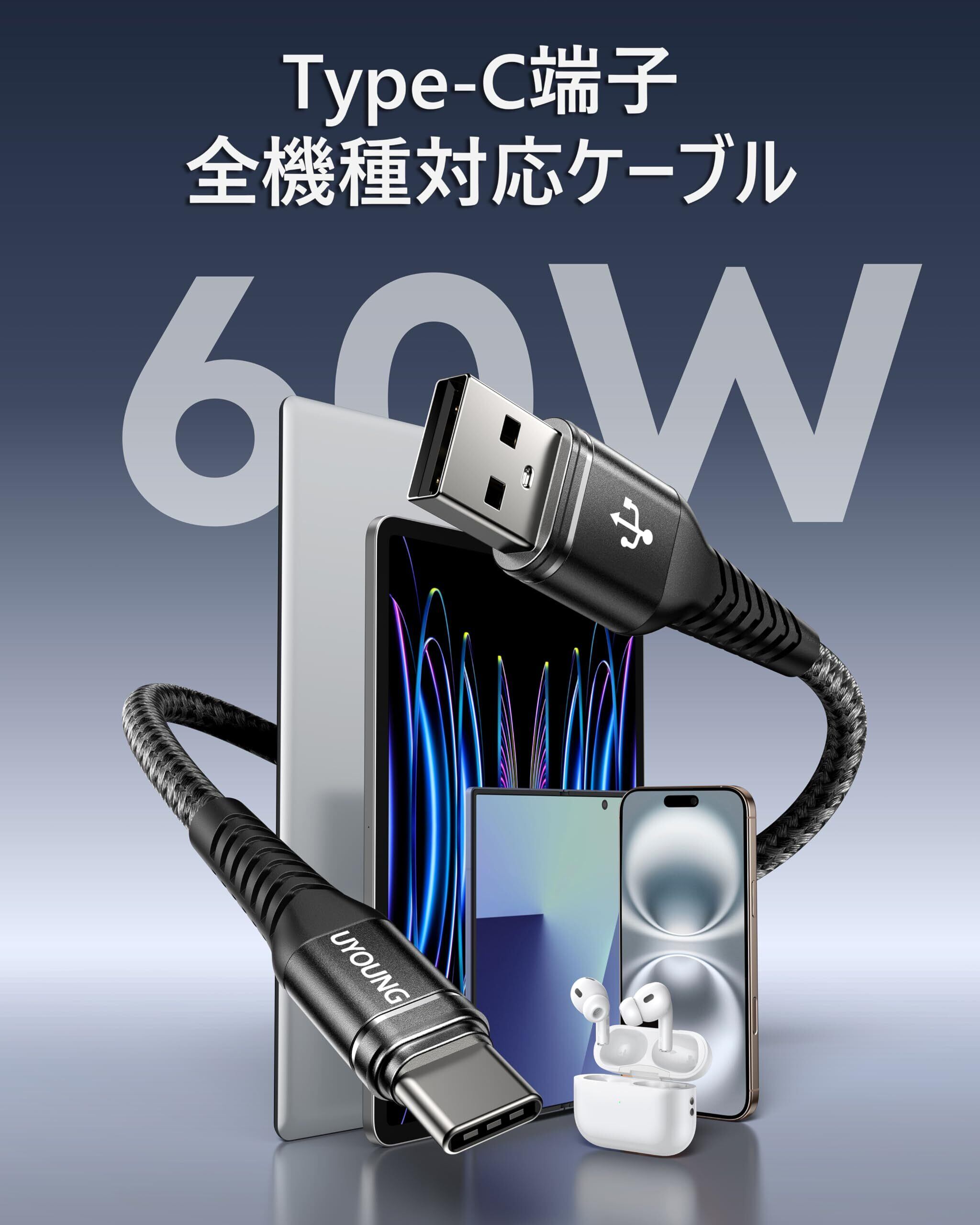 特徴 60W, USB A to USB C, データ転送, 編組, 高速充電