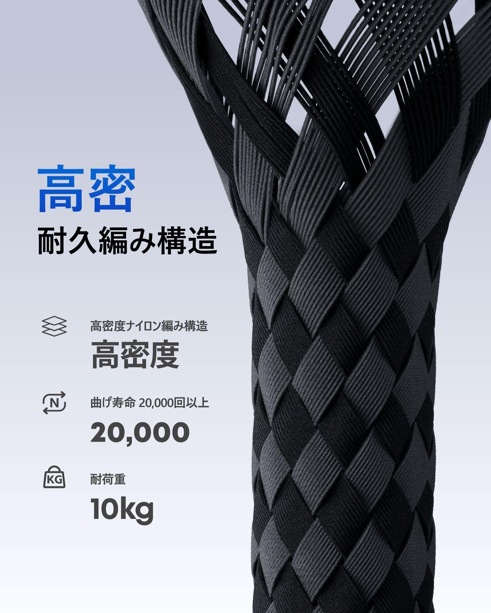 【高耐久ナイロン編み & アルミ合金コネクタ】ナイロン二重編み加工により断線に強く、柔軟でありながらも高い耐久性を実現した充電ケーブルです。アルミ合金製コネクタは抜挿寿命を大幅に向上させ、酸化・サビを防止。20,000回以上の曲折テストをクリアしており、日常的な使用に耐える頑丈な設計で長期間ご利用いただけます。