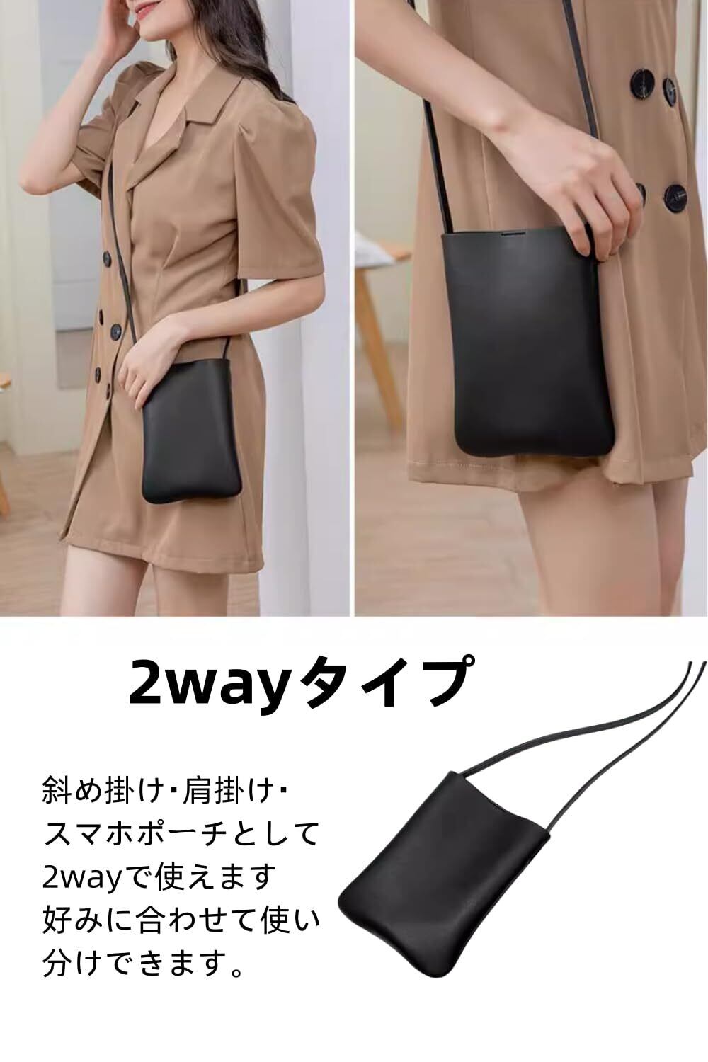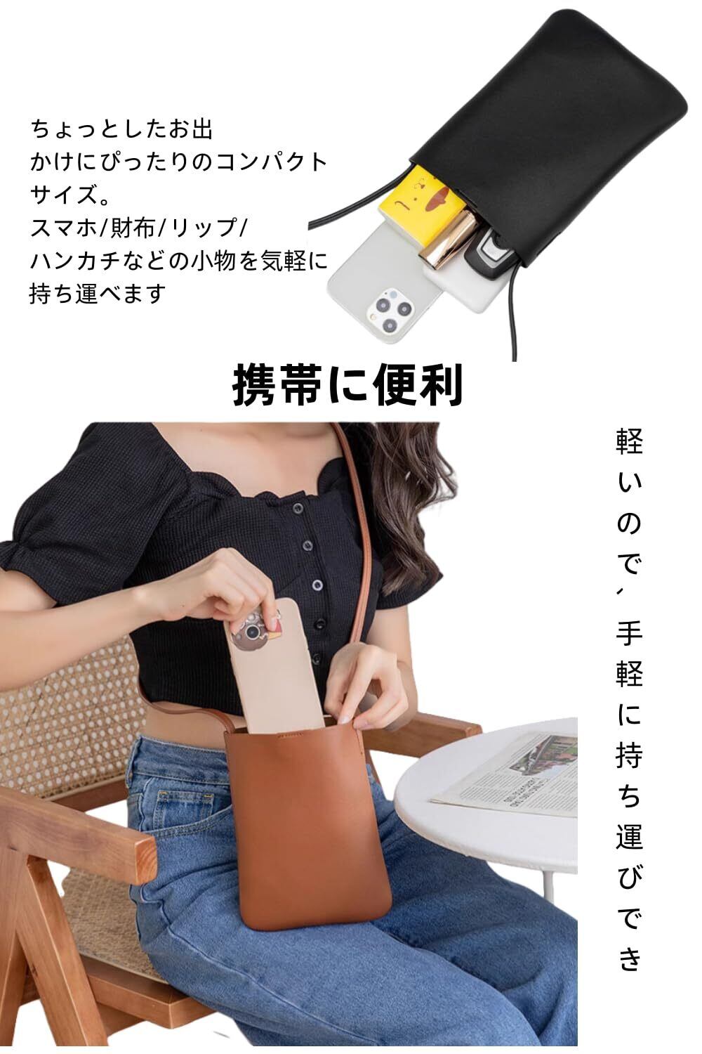 【携帯に便利】軽いので、手軽に持ち運びでき、6.5インチ内サイズ携帯電話を収納可能。スマホやリップを入れておくのにぴったり!お出かけの時に持ち運びに便利なミニバッグ!