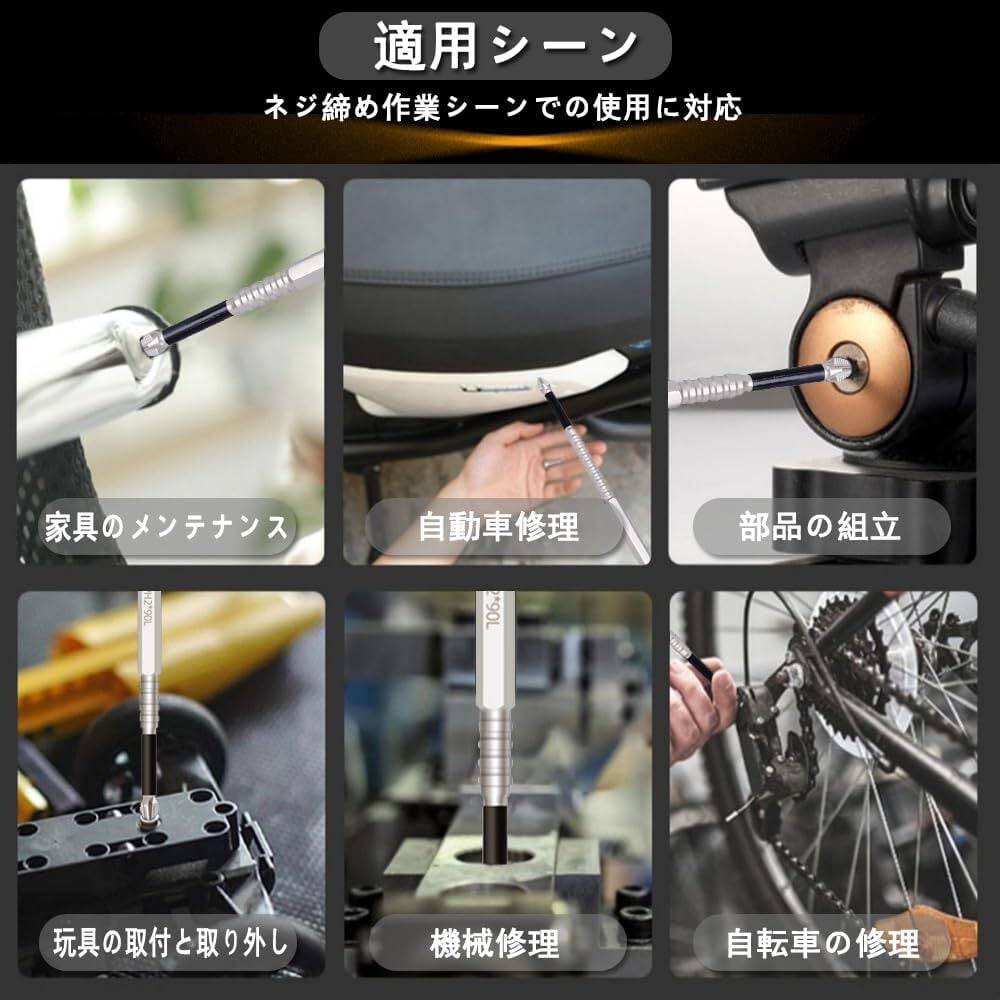 幅広い用途:薄鉄板・アルミ・木材などへのネジの締め付け作業に。家具、機械、設備、自動車、オートバイなどに使用する穴付きボルトと固定ネジに適しています。DIYプロジェクト、家庭修理、専門的な作業に最適です。様々な締め付けニーズに対応します。