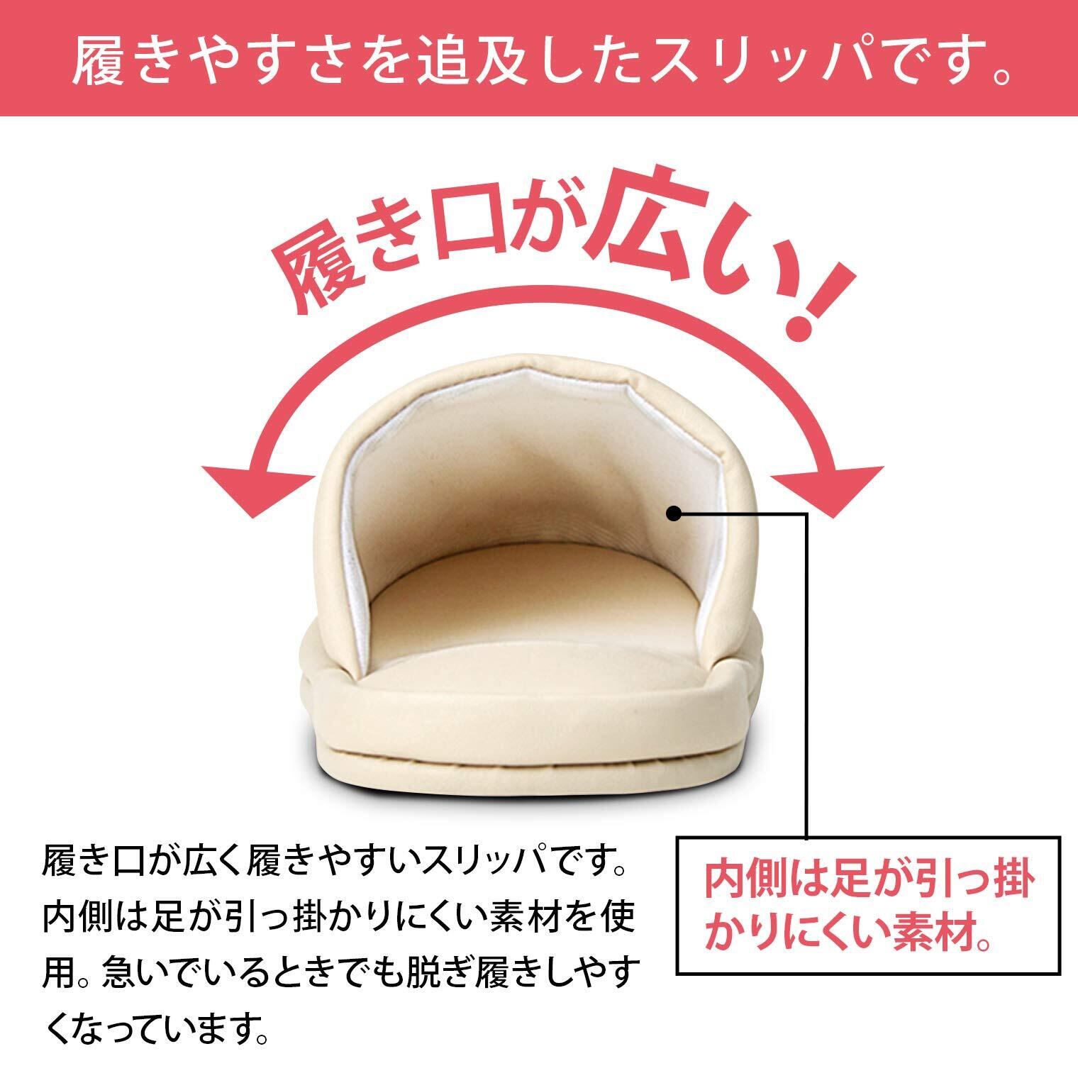履き口がゆったりと広い履きやすいスリッパ。