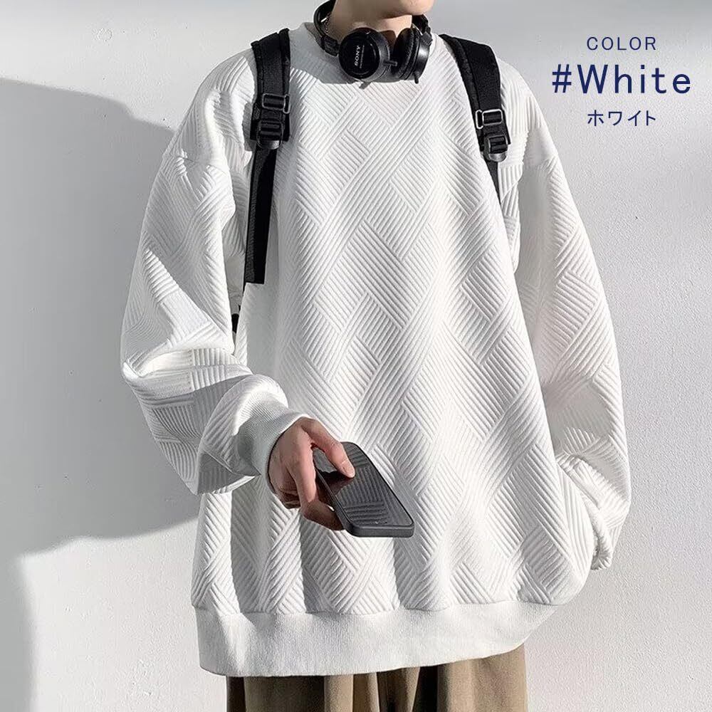 【こだわりディテール】凹凸のある生地感がいつものパーカコーデを格上げしてくれます。独自の生地感による遊び心と大人の男の品格を併せ持つモデルに仕上がりました。適度な厚みのある高品質生地を使用し、肌触りに優しい着心地が楽しめる無地トレーナーです。定番なクルーネックやしっかりとした縫製でロングシーズンに着用できます。