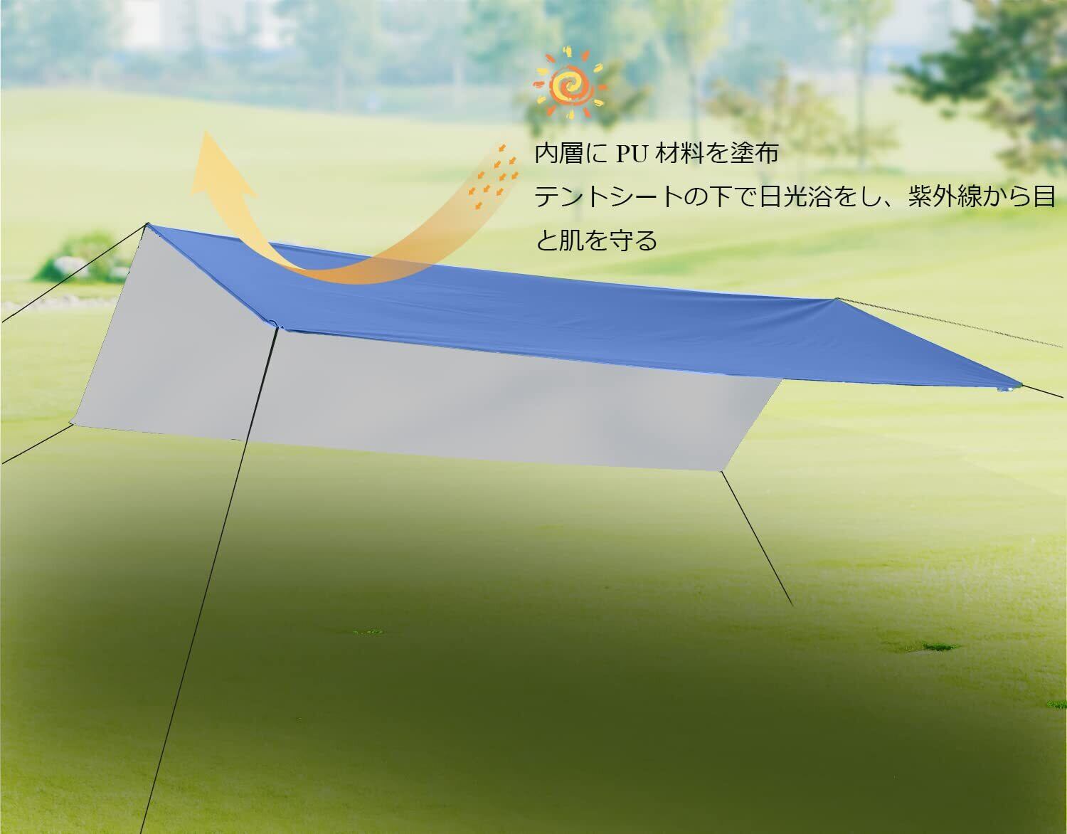 ポータブル多機能タープ キャンプ天幕テント防水棚防水棚軽量 遮熱 遮光 軽量 キャンプ用品リュックサック、トレッキング、ビーチ用 (300*450cm - 青い)