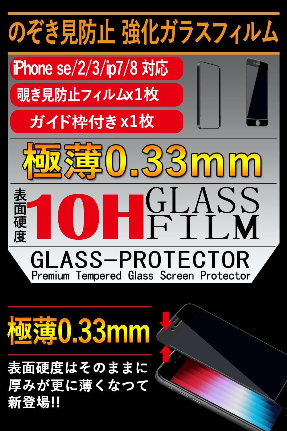 用のiPhone se3/se2/7/8 ガラスフィルム覗き見防止 用のiPhone se2/se3/7/8 フィルム のぞき見防止【秒で貼り付け/ガイド枠付き/指紋防止 ケースに干渉しない】日本旭硝子素材製 硬度10H 耐衝撃 強化保護フィルムのぞき見防止 アイフォンSE3/アイフォン SE2/あいふおん 8/7 フィルム 覗き見防止 -4.7インチ(ブラック)