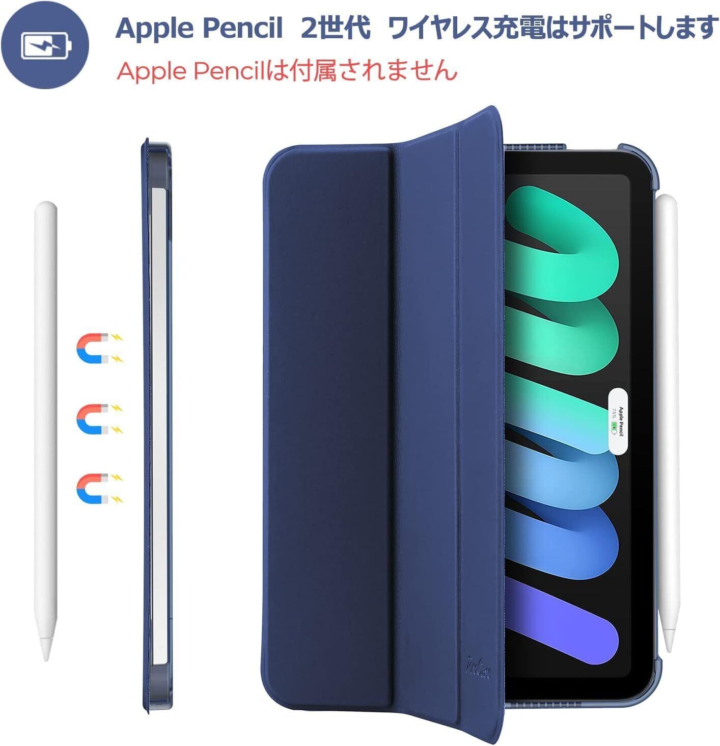 フル互換性: Apple Pencil 第2世代の磁気充電対応、自動スリープ/復帰、Touch ID、磁気閉じ対応