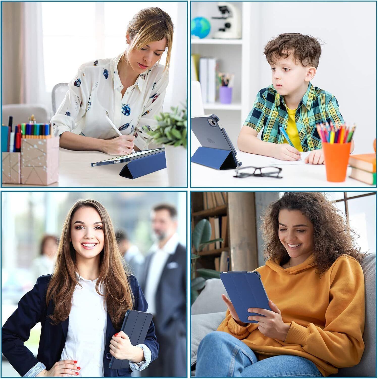 多機能カバー: 三つ折りカバーで2段階スタンド角度調整、全ポート・ボタン・カメラ・スピーカーにアクセス可能
