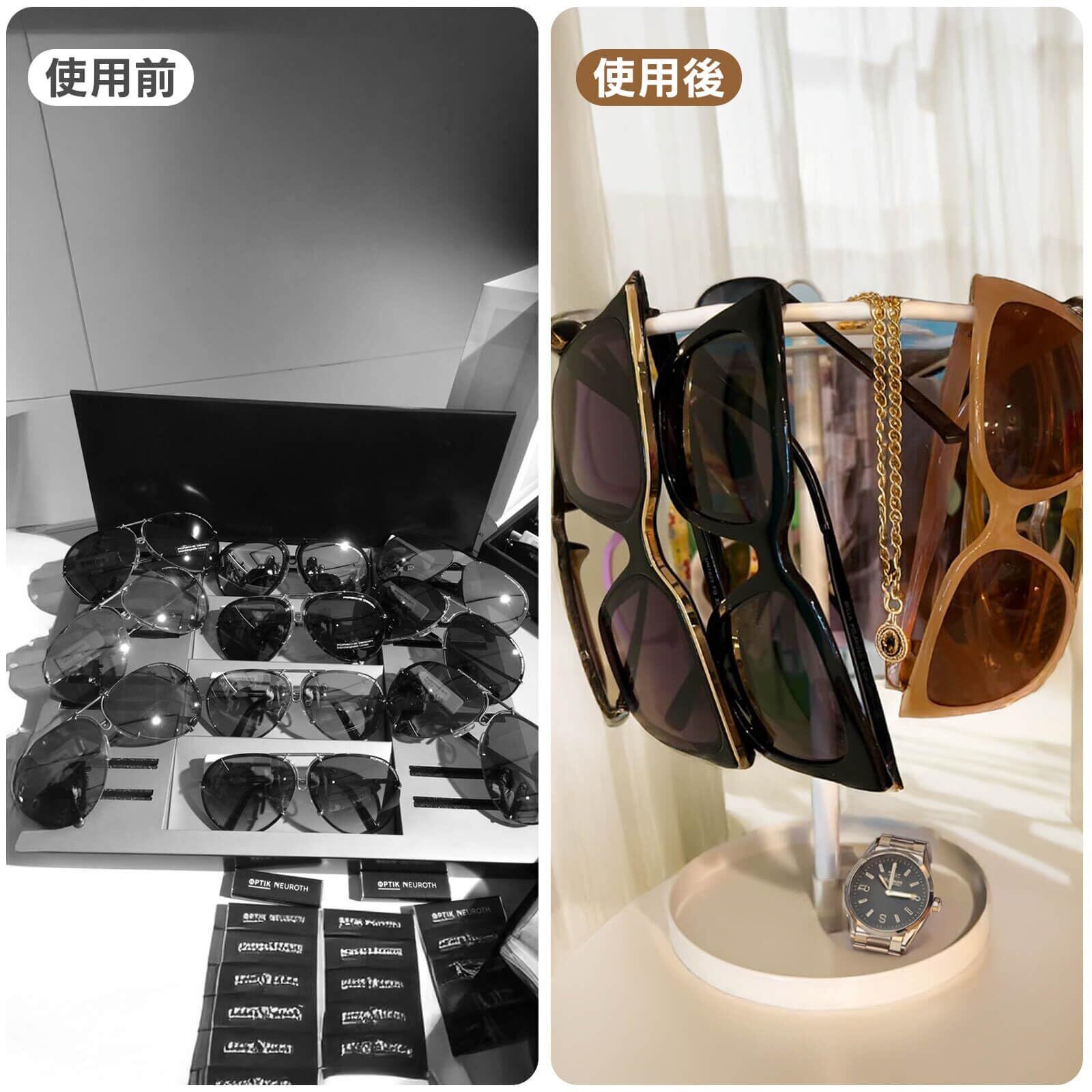素材:スチール製のサングラスメガネスタンドは、どんなインテリアにもよく馴染みます。