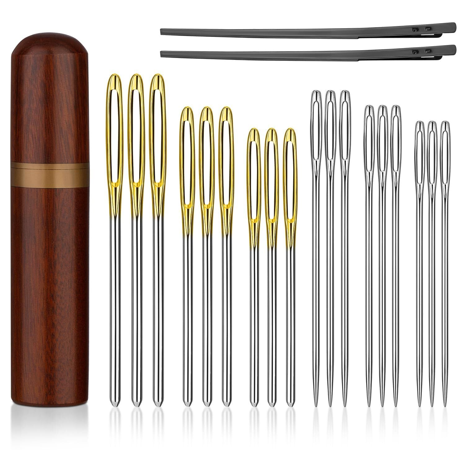 18本入り手縫い針: レザークラフト用の手縫い針9本と丸針9本入りです。シルバー 針先がファイバーを分割することなく、ファブリック糸とリボンとの間をスリップするのに最適です。ほとんどの縫製作業に最適:コート、テント、マットレス、毛皮、革用 縫製修理。