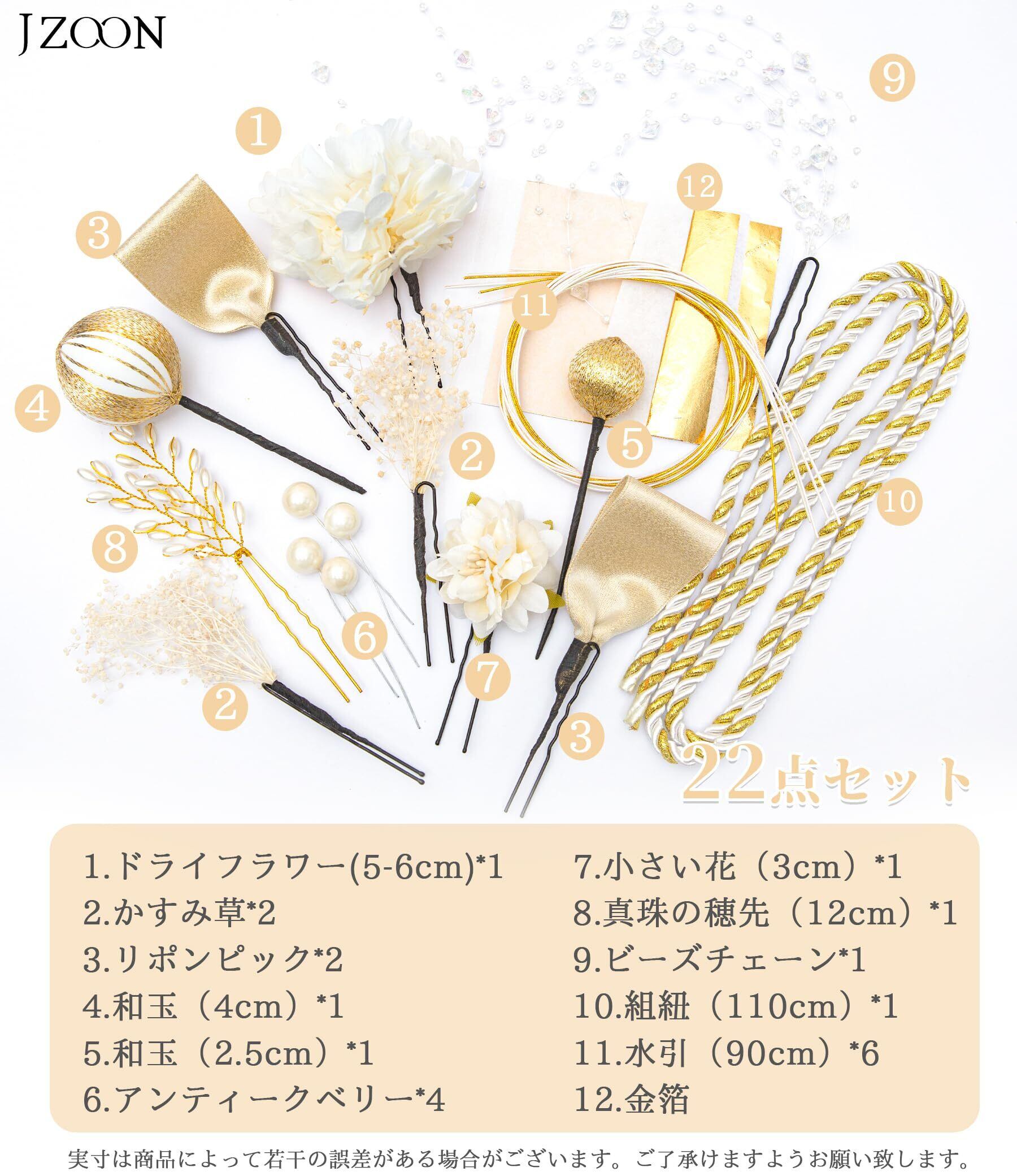【2022最新】[JZOON] 髪飾り 9色展開 成人式 髪飾り ドライフラワー 袴 卒業式 和装 結婚式 振袖 プリザーブドフラワー 金箔 紐アレンジ 水引 和玉 A1600