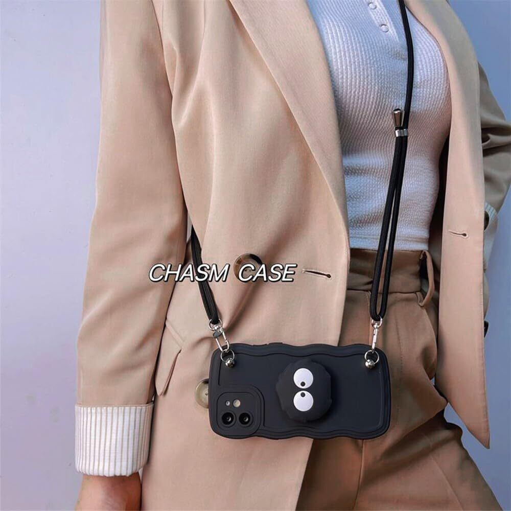 【2022最新】まっくろくろすけ スマホケース iPhone XS Max 用 ケース 首かけストラップ 携帯ストラップ アイフォン XS Max 用 ケース 6.5インチ リストレット キックスタンド TPU保護