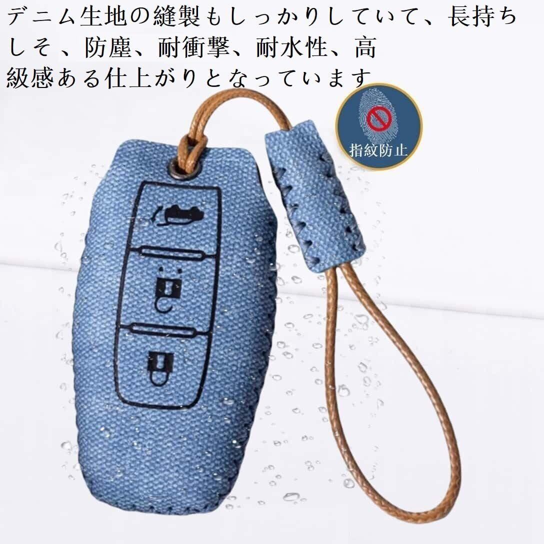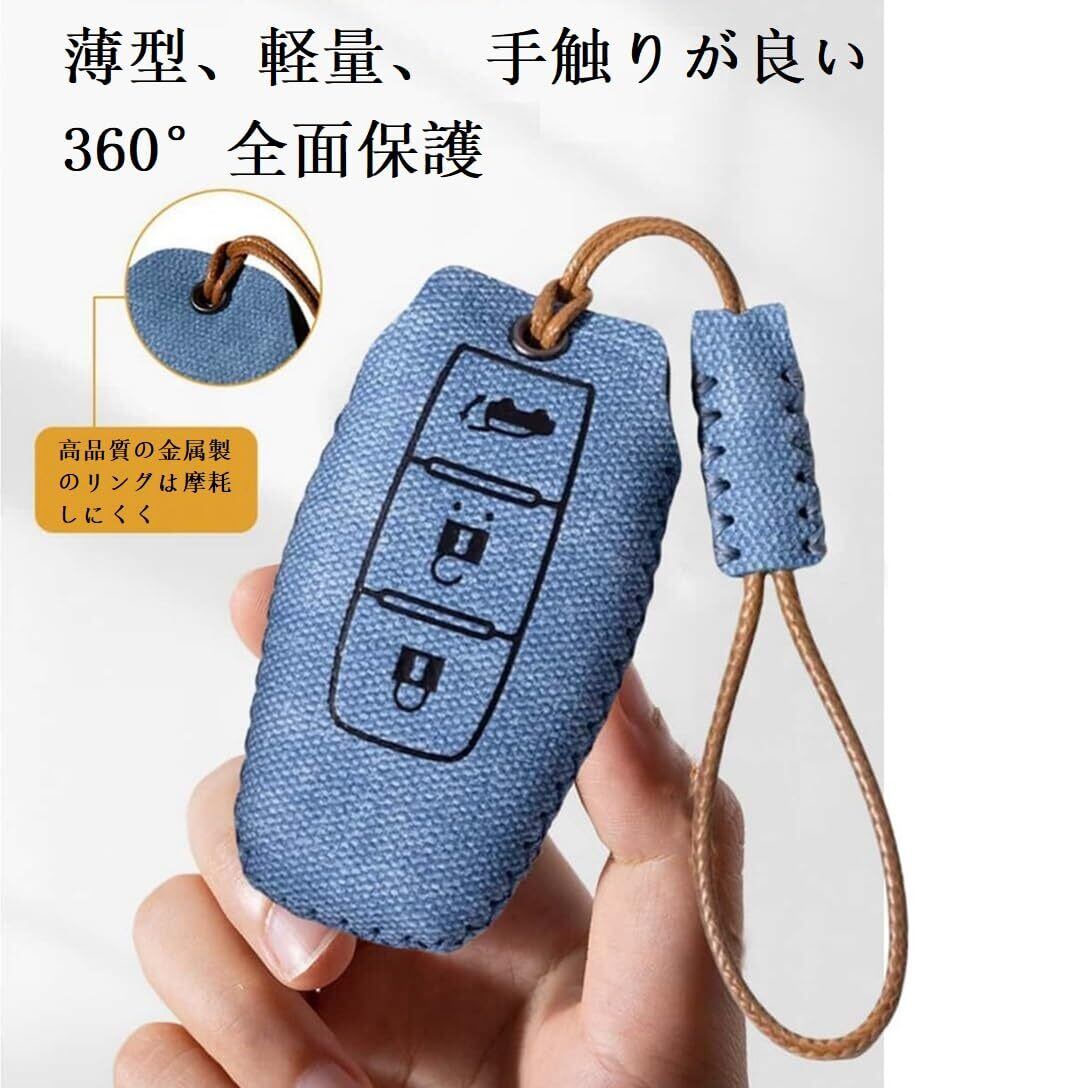 【高級可愛な質感】デニム模様のレザースマートキーケースです、表面はデニム素材です、裏地はキーに傷をつけないためか柔らかいスエ。純粋な手縫い、太い縫い、均一な縫い、耐久性が良く。デニム生地の縫製もしっかりしていて、長持ちしそ、防塵、耐衝撃、耐水性、高級感ある仕上がりとなっています。 新型アウトランダー スマートキー専用設計のデニムキーケース、すべてのボタンと完全に整列し。【全面保護】衝撃に強く、日常生活での消耗に耐えしっかり保護できるので、落下や衝撃による損傷を軽減します。付属の細めの紐キーホルダーと一緒に使うことで、落下防止効果が得られます。