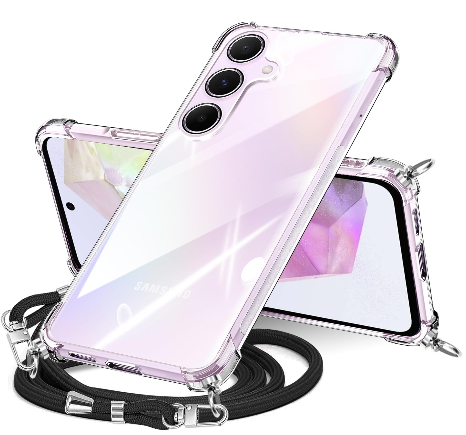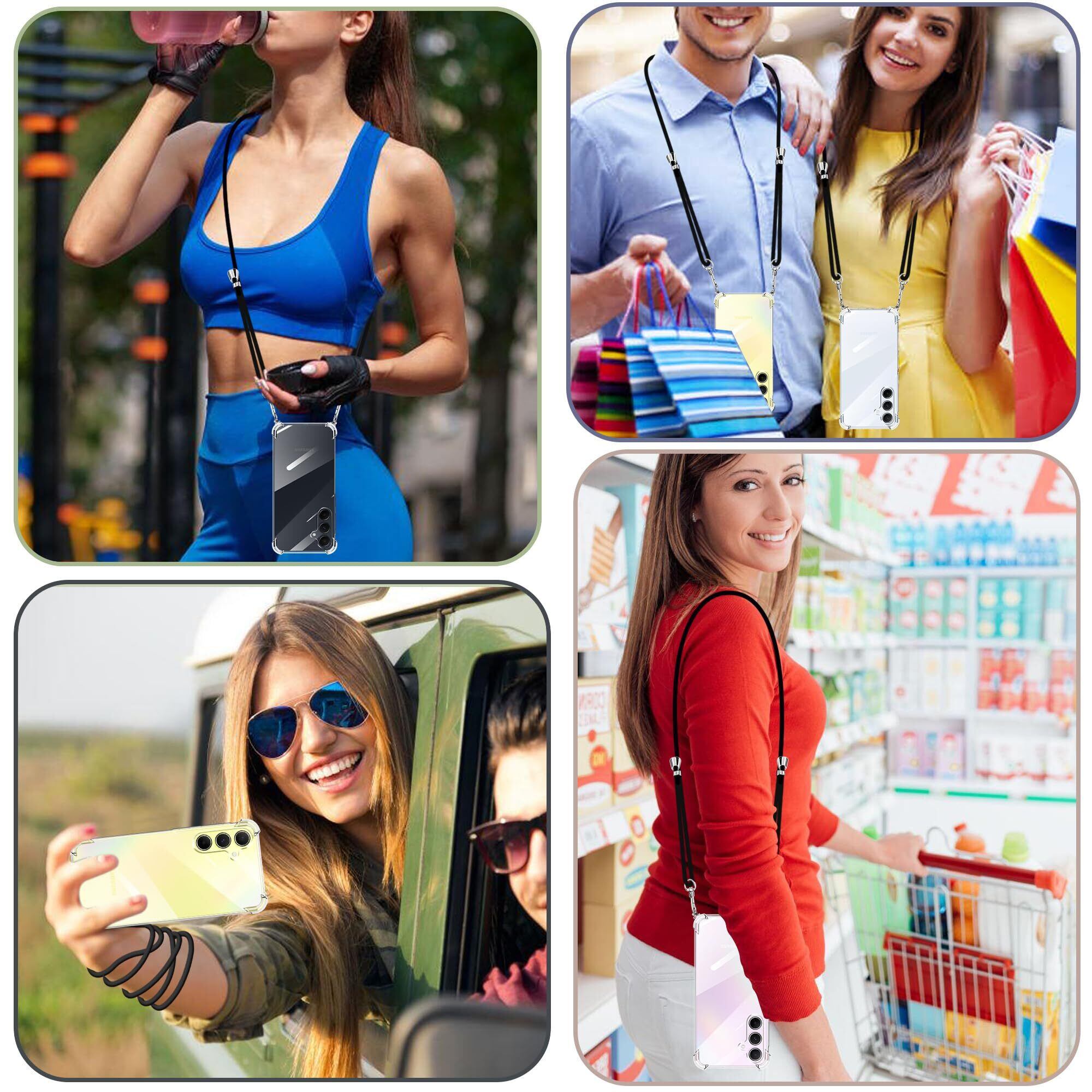 Galaxy A55 5G ケース クリア ショルダー galaxy a55 5g スマホケース ギャラクシーA55 カバー 肩掛け 斜めかけ 縄掛けケース 透明 TPU 耐衝撃 薄型 軽量 ケース 紐付き 斜めがけ 織りストラップ付き ネックストラップ ショルダー 長さ調整可能 取り外し可能 落下防止 紛失防止 (クリア)